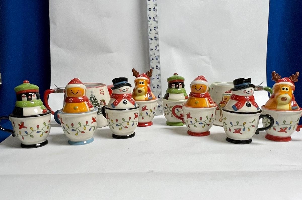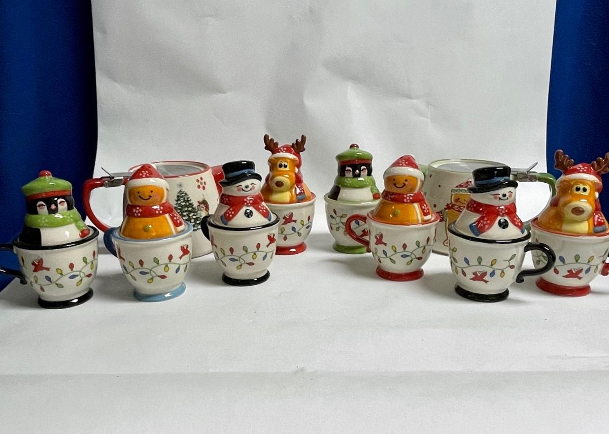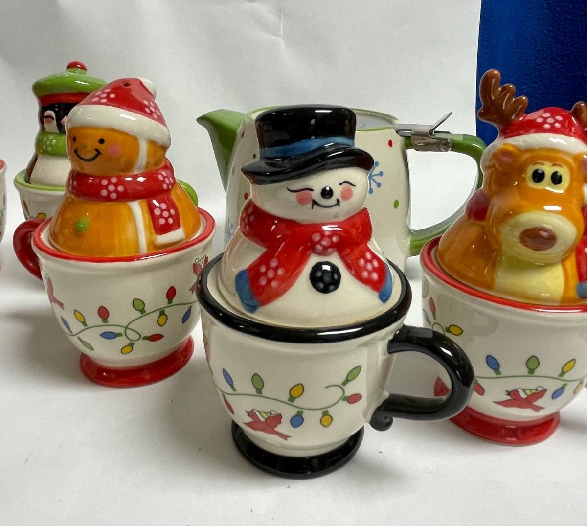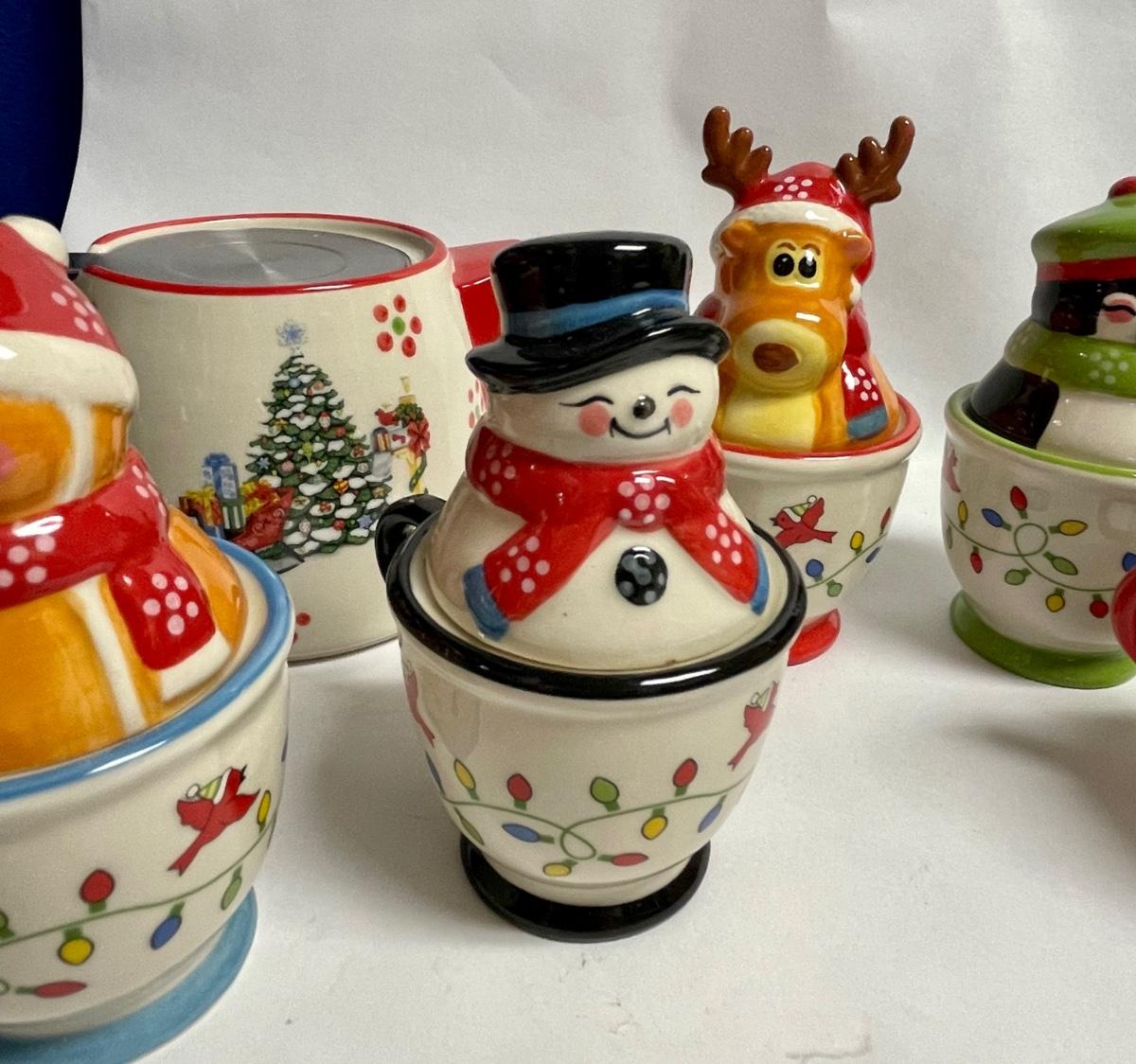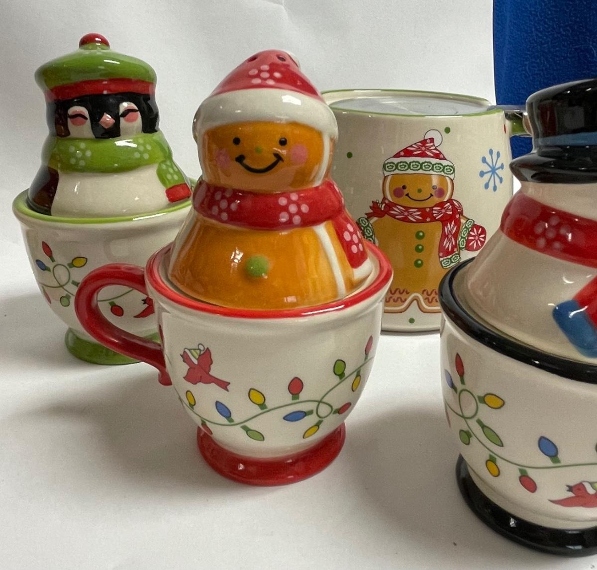 Ceramic Temptations by Tara Lot of Salt & Pepper sets - Gingerbread couple, Snowman couple, Moose & Penguin - plus teapots
