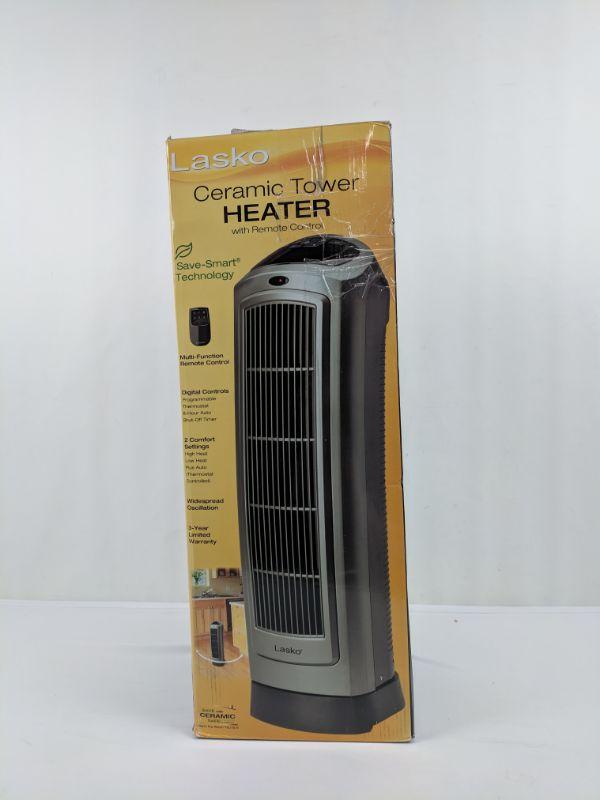 Ceramic Tower Heater with Remote Control, Lasko, Box Open/Damaged - New