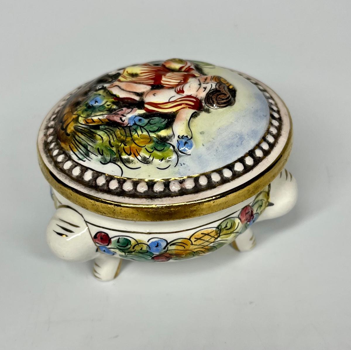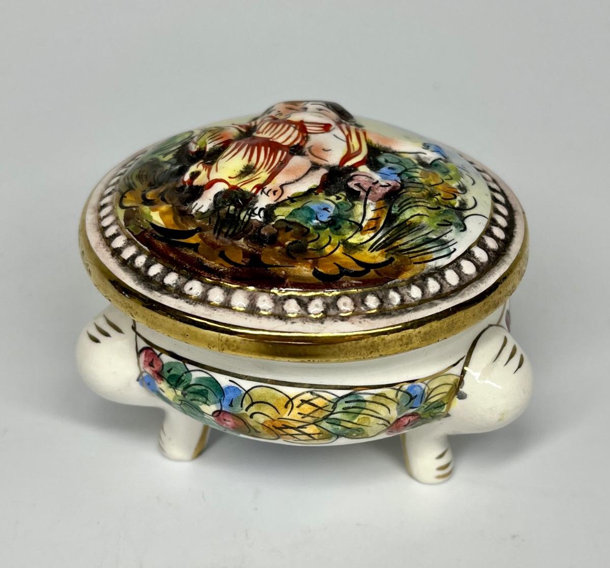 Vintage Capodimonte Italy Porcelain Trinket Box. Numbered and marked on the bottom. In good condition.