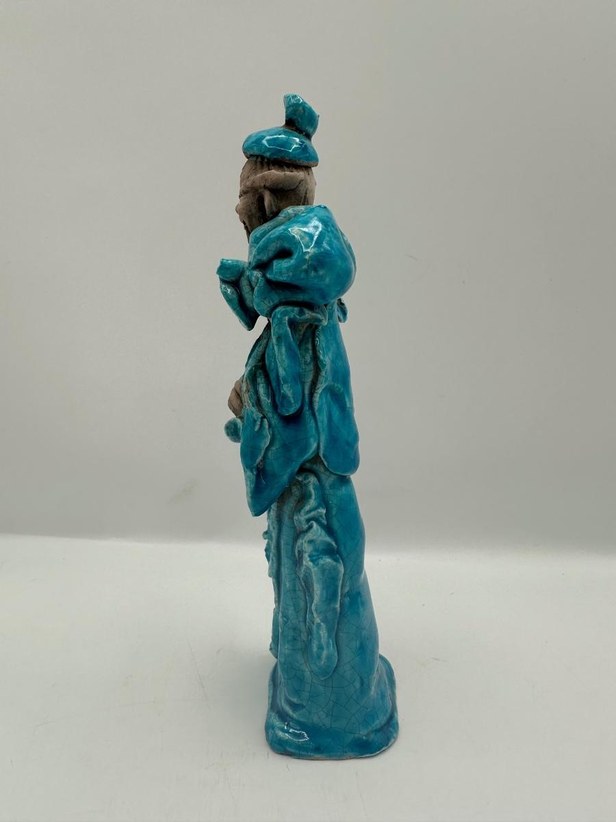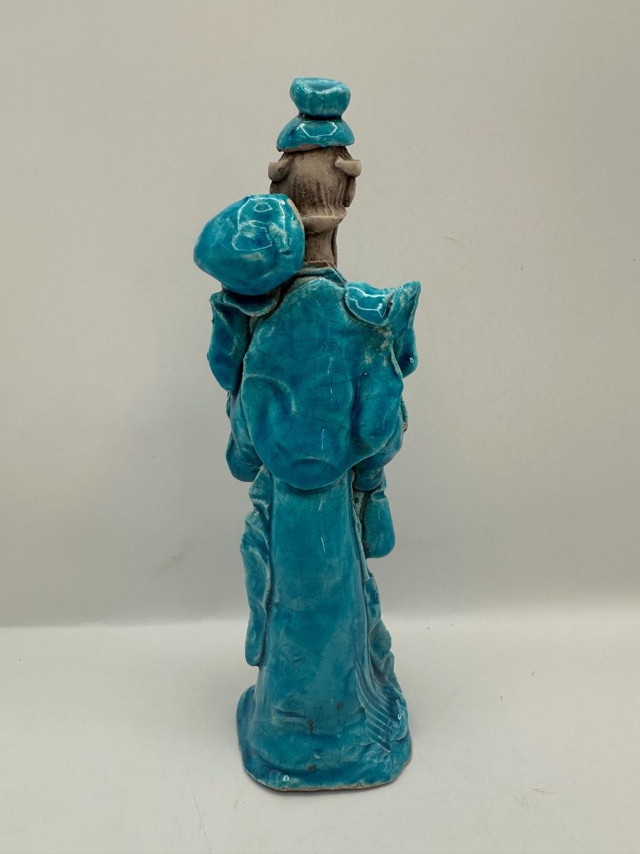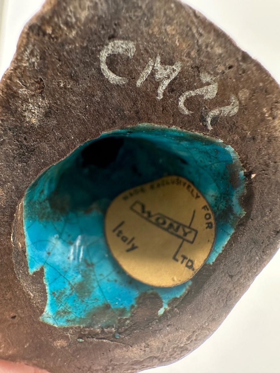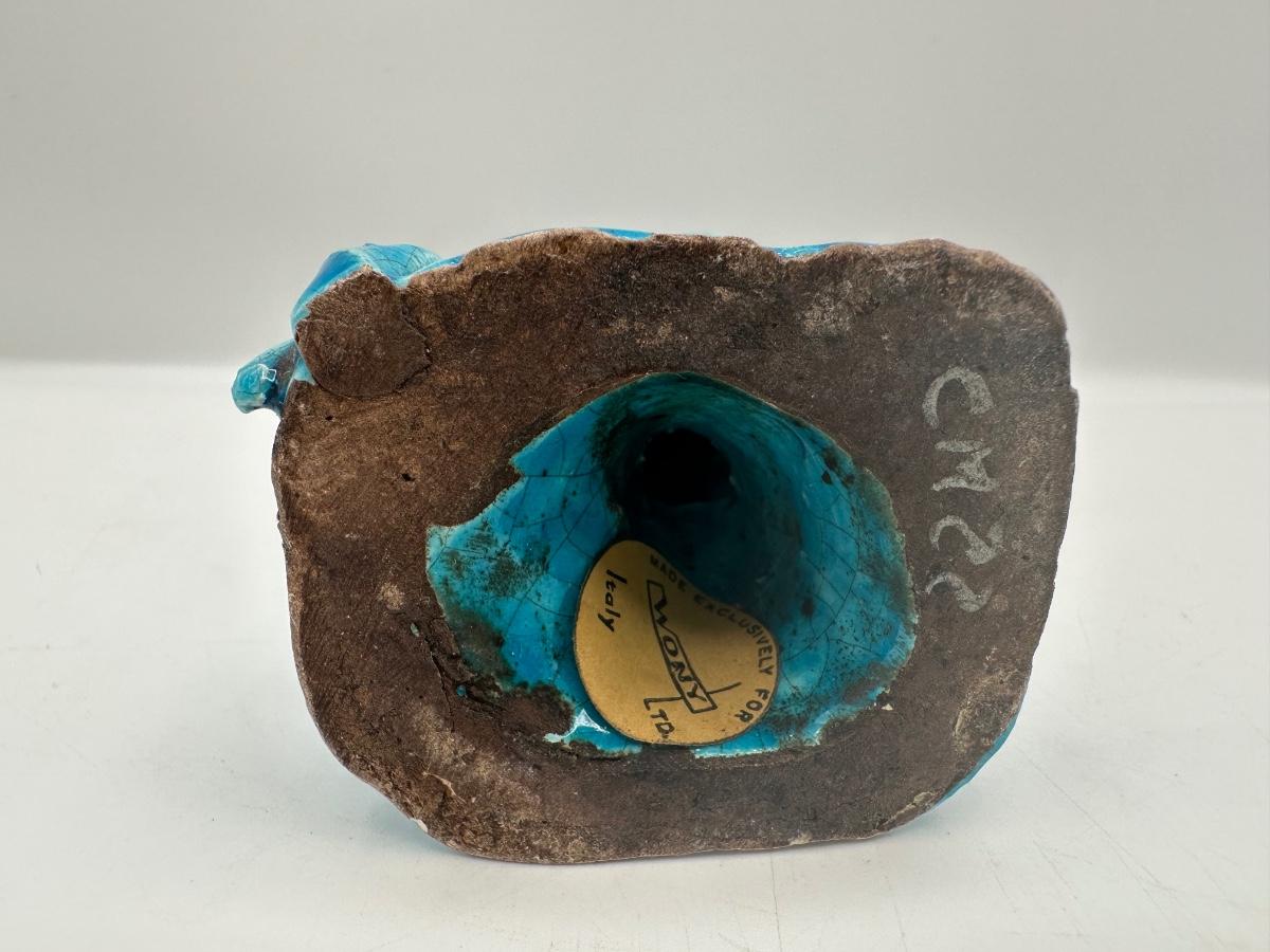 Ceramic Turquoise-Glazed Figure – Marked “Italy,” MONY LTD Label