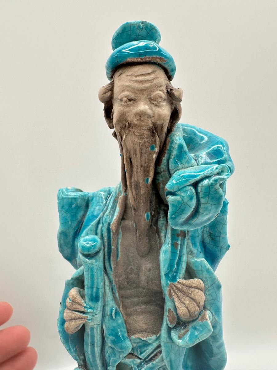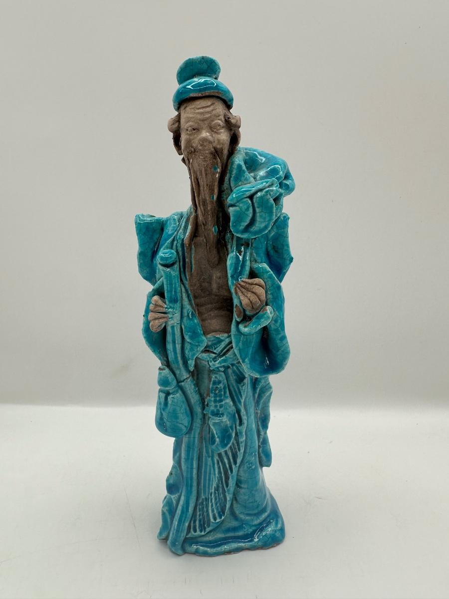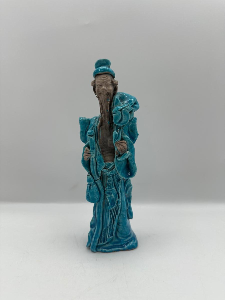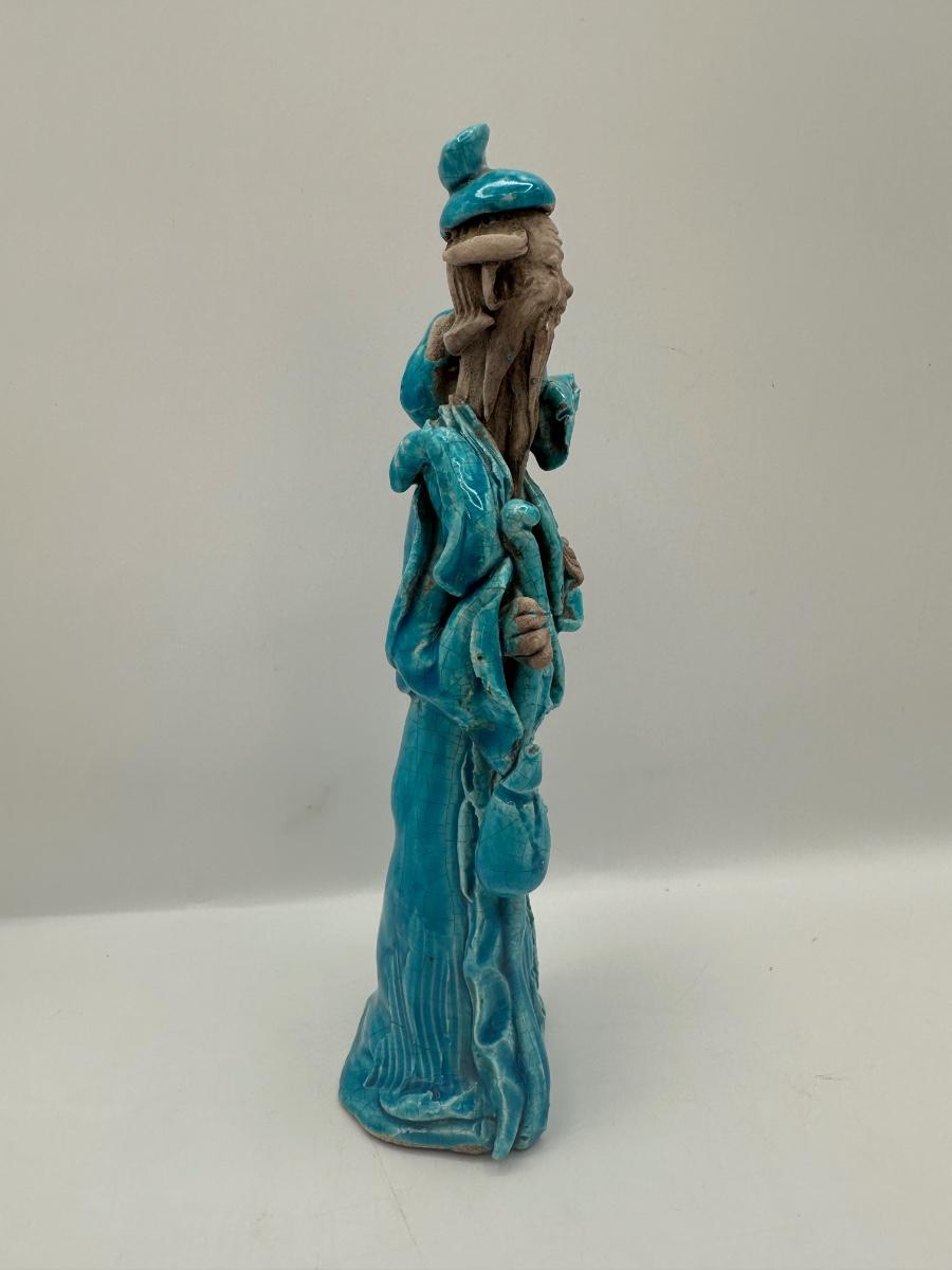 Ceramic Turquoise-Glazed Figure – Marked “Italy,” MONY LTD Label