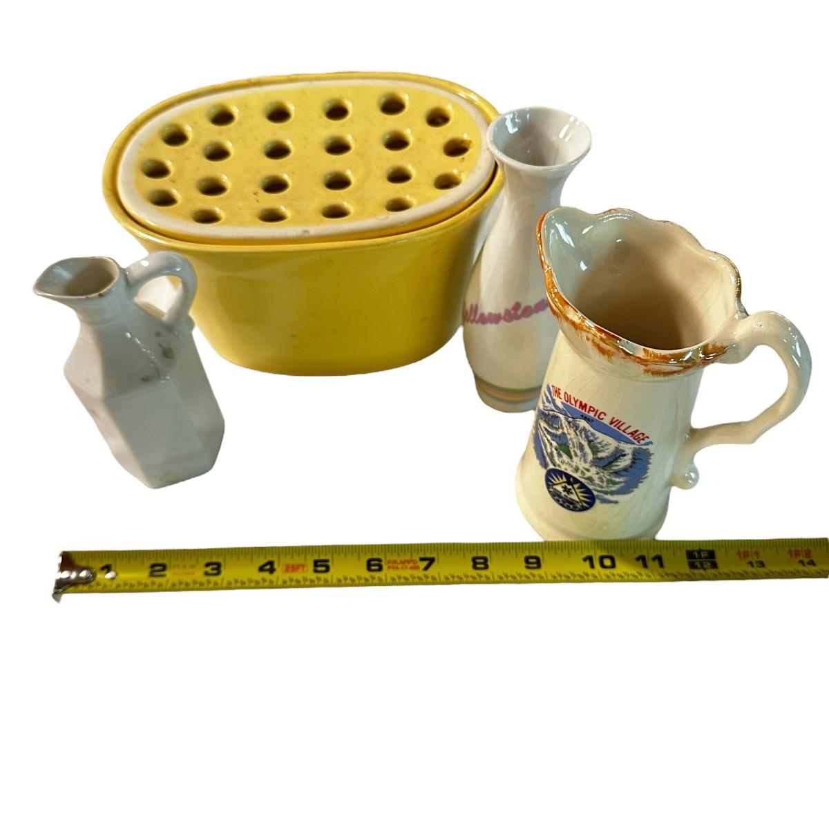 Ceramic Vases Lot w Large "Frog" Stem Holder, Olympic VIllage, Yellowstone