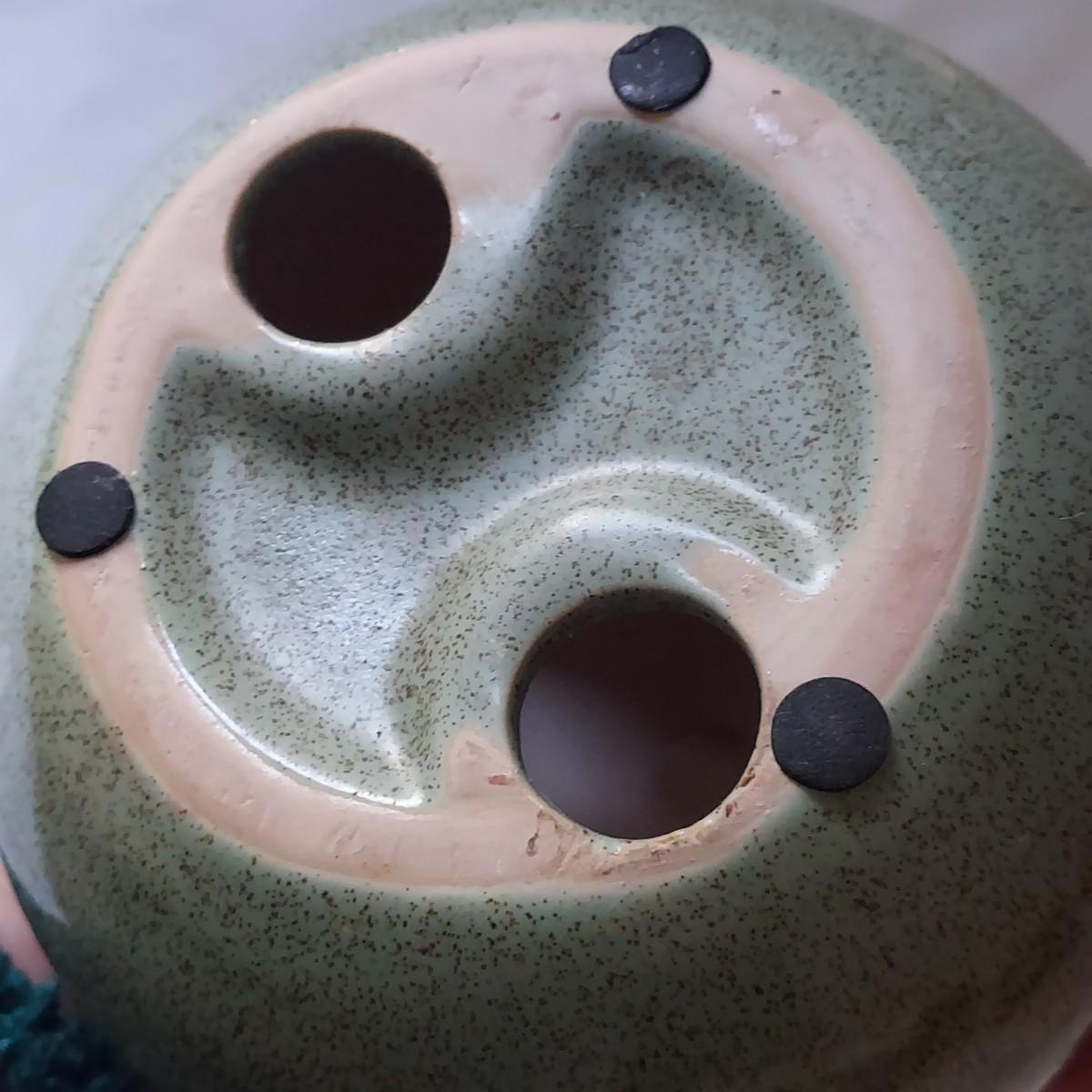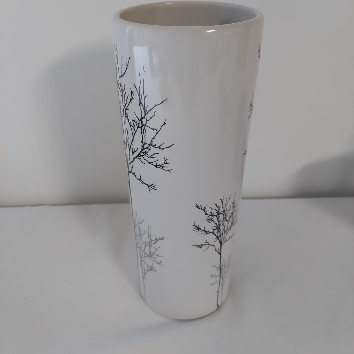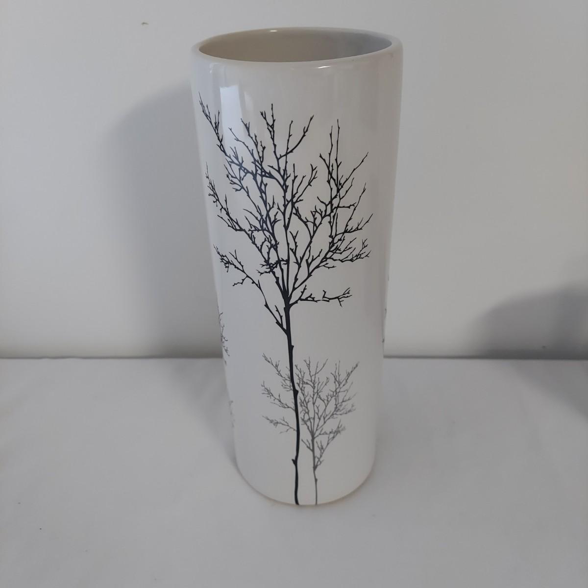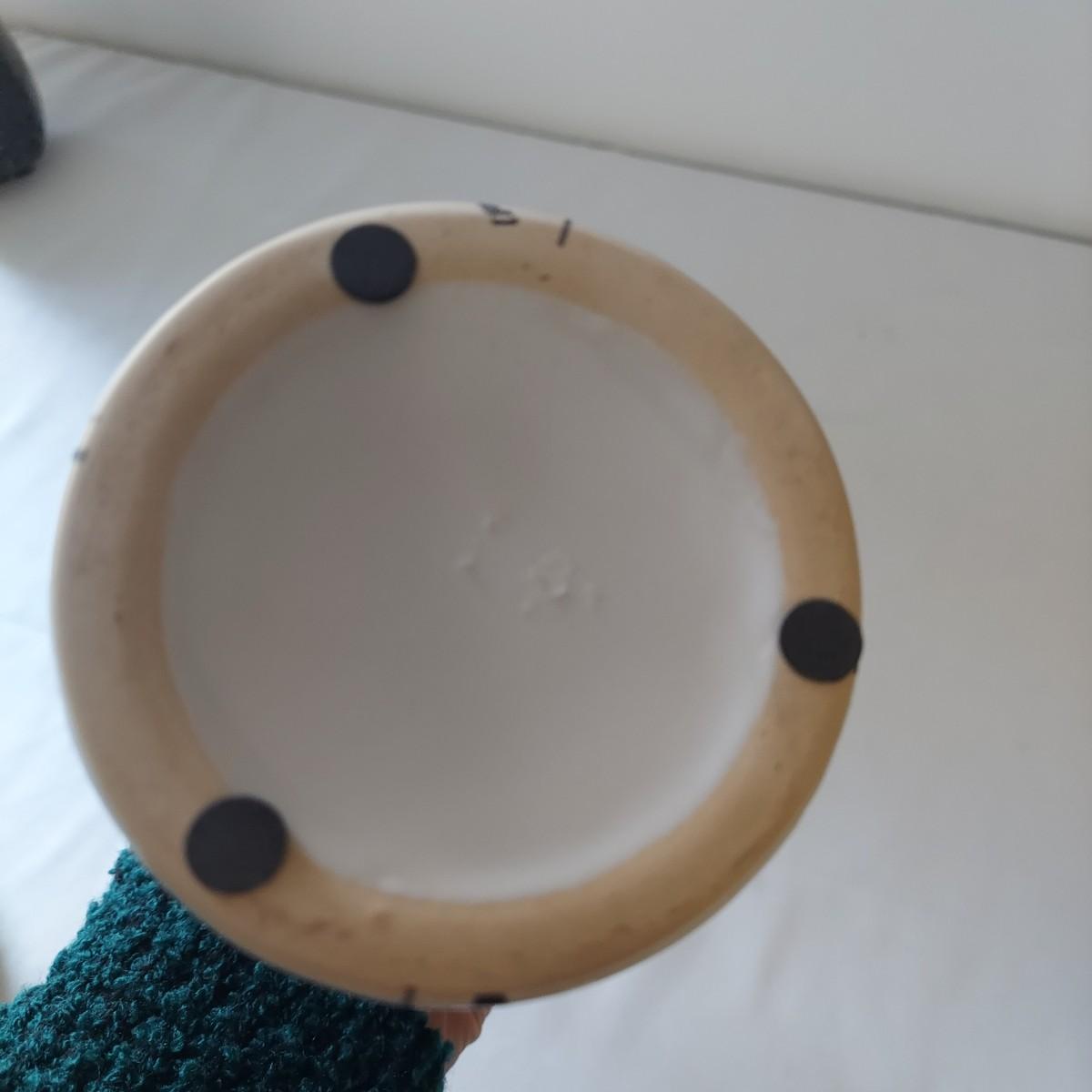 Nine pieces of ceramics by Potterybarn and more. The green dish appears to be vintage Shawnee USA mold 150. The largest square vase measures 6"SQ x 12"H. Please see photos for details. Shipping available