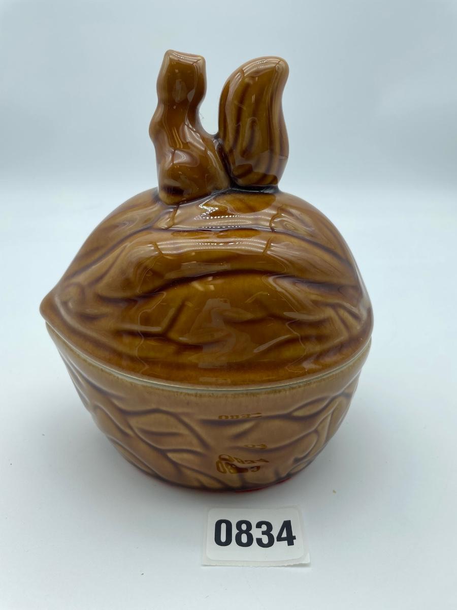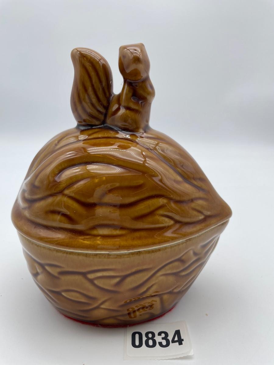 Ceramic vintage squirrel on walnut