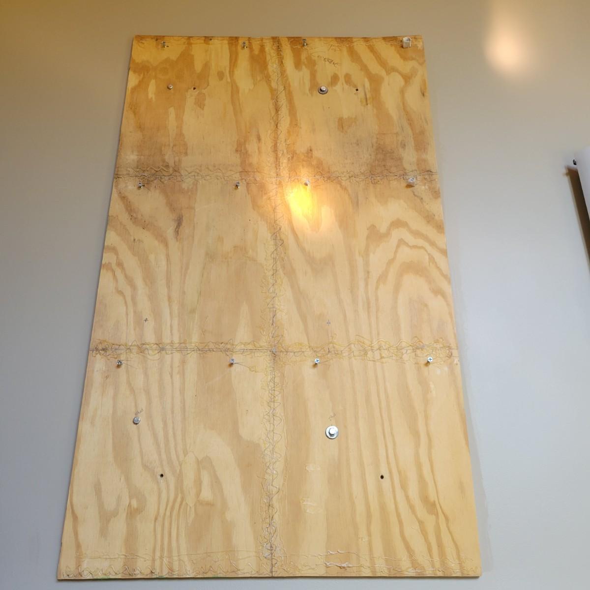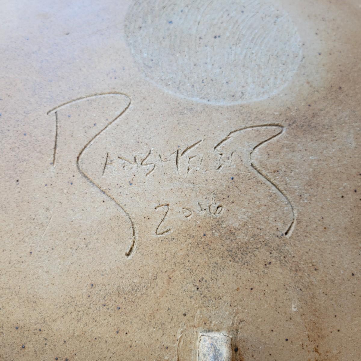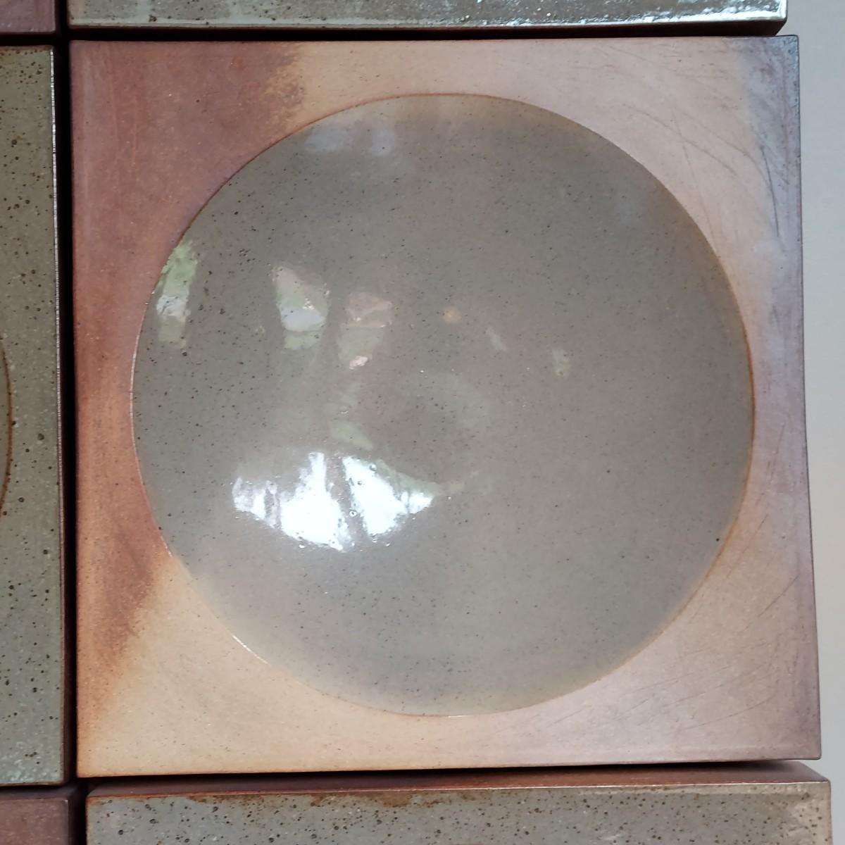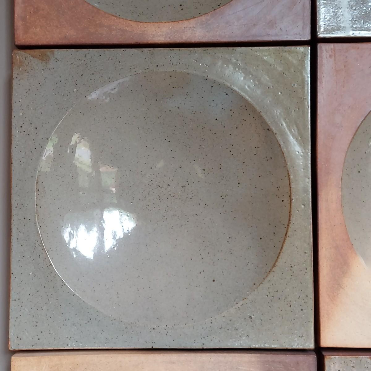 Large ceramic wall art piece. There are six individual signed pieces and each is 17" square and nearly 3" deep. They are glazed in shades of tan, rust and sage green. Winning bidder is required to remove and take the original mounting board. A ladder and socket set will be needed. Local Pickup Only.