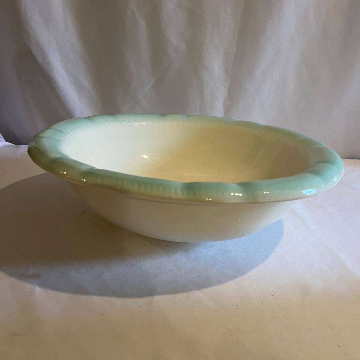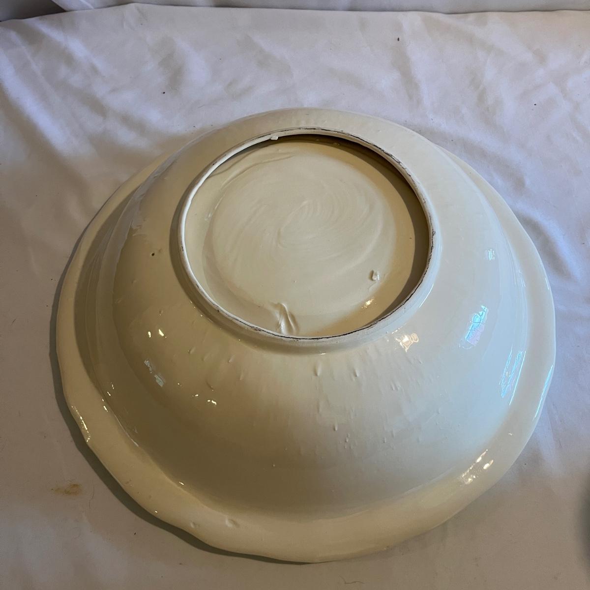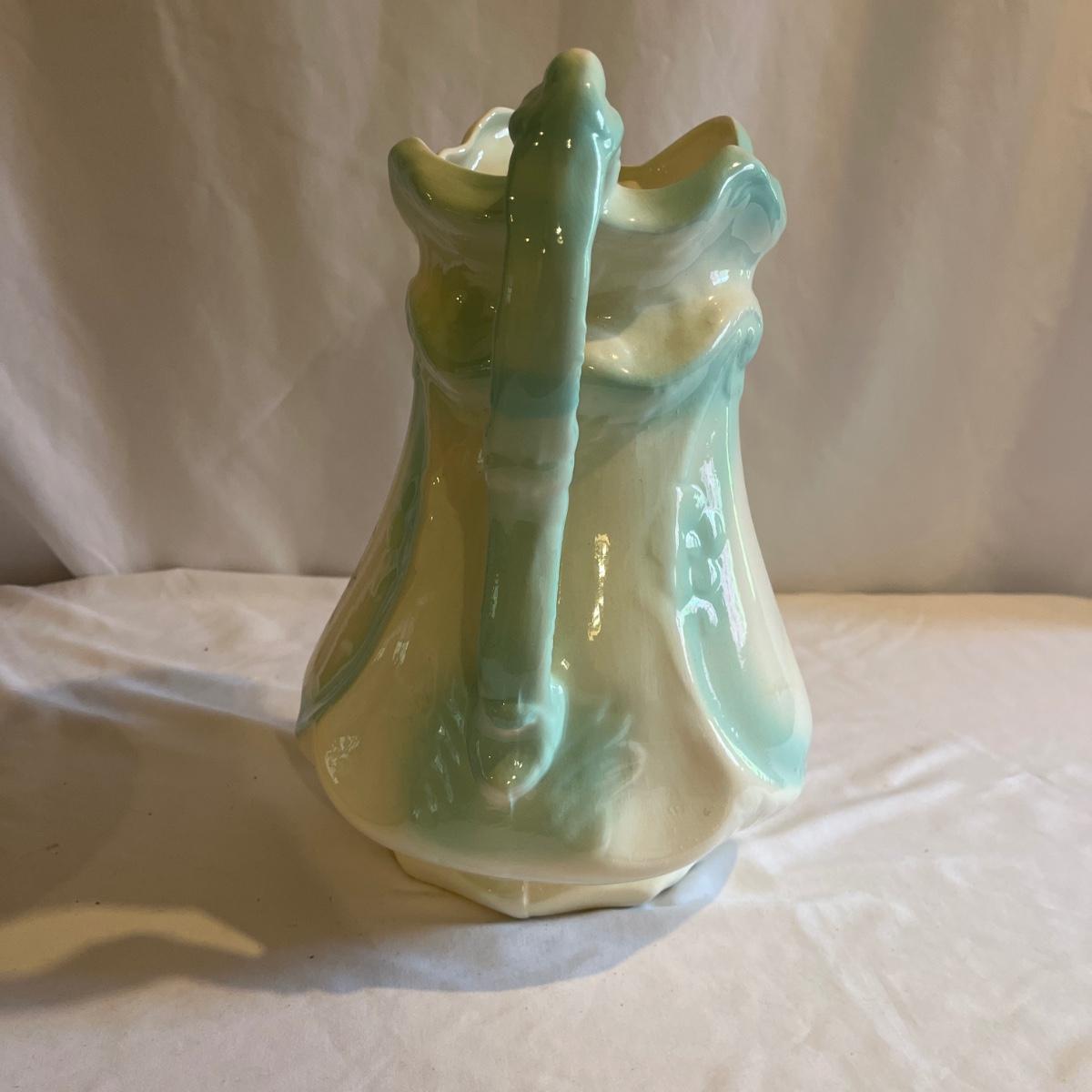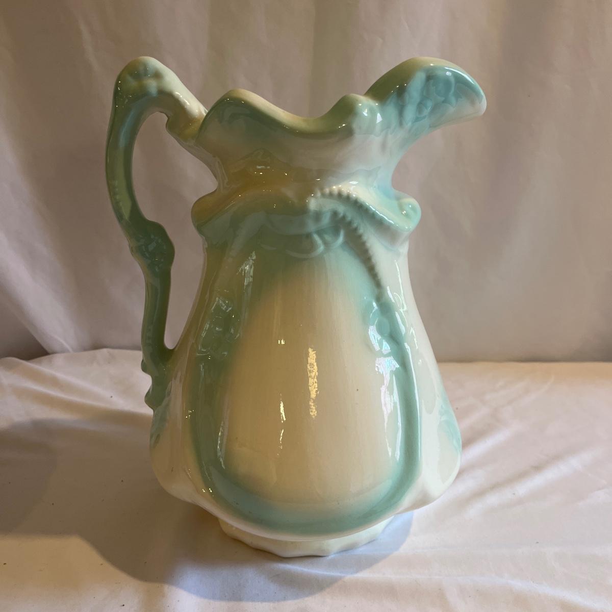 This ceramic Wash pitcher and basin set have a floral design. Pitcher measures 9.5”D x 13”H and basin measures 16”D x 5”H.