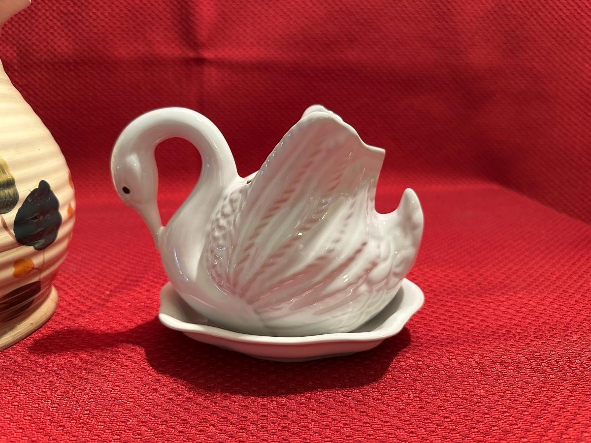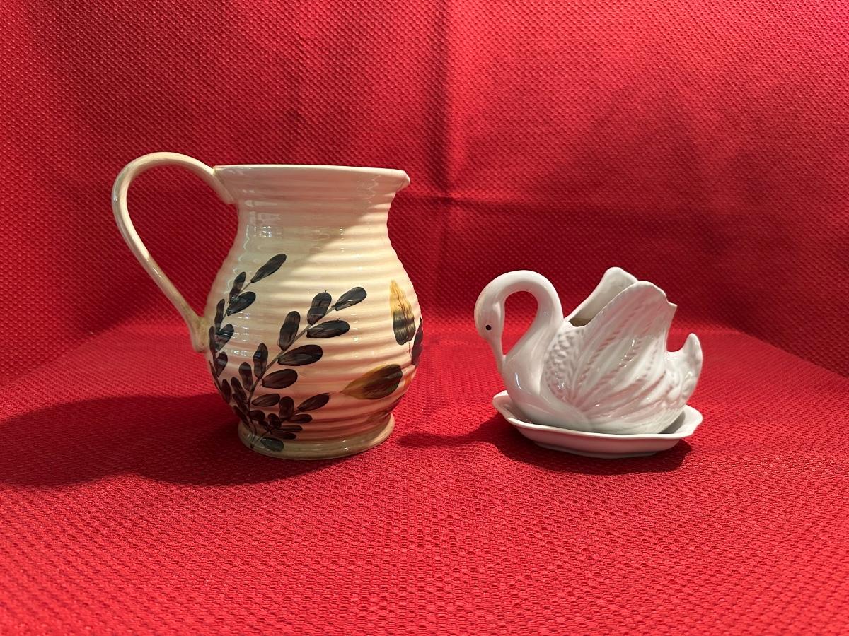 CERAMIC WATER PITCHER AND A SWAN PLANTER