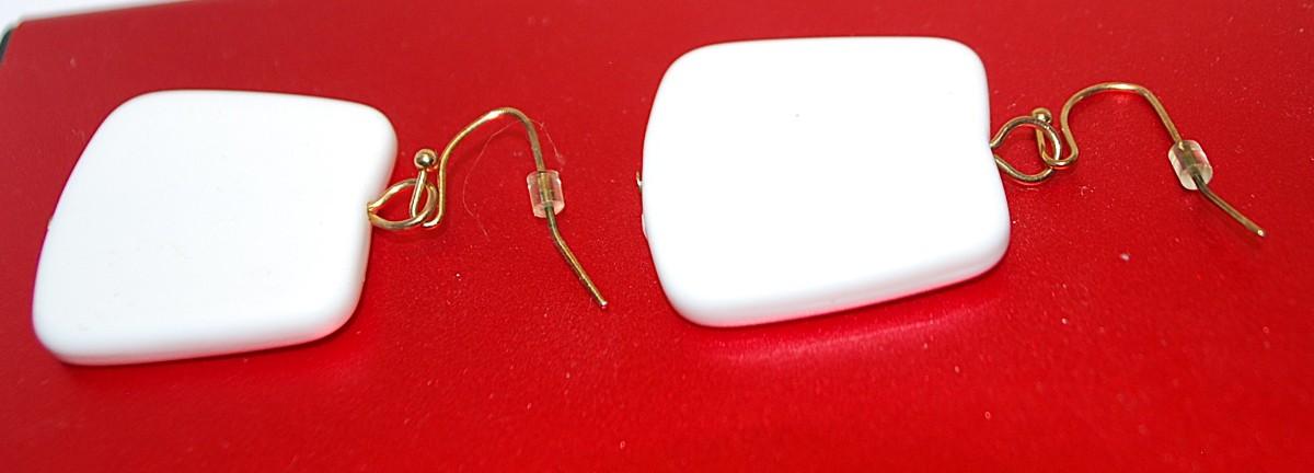 Ceramic White Squares EARRING Set with Wire Hook Clasp