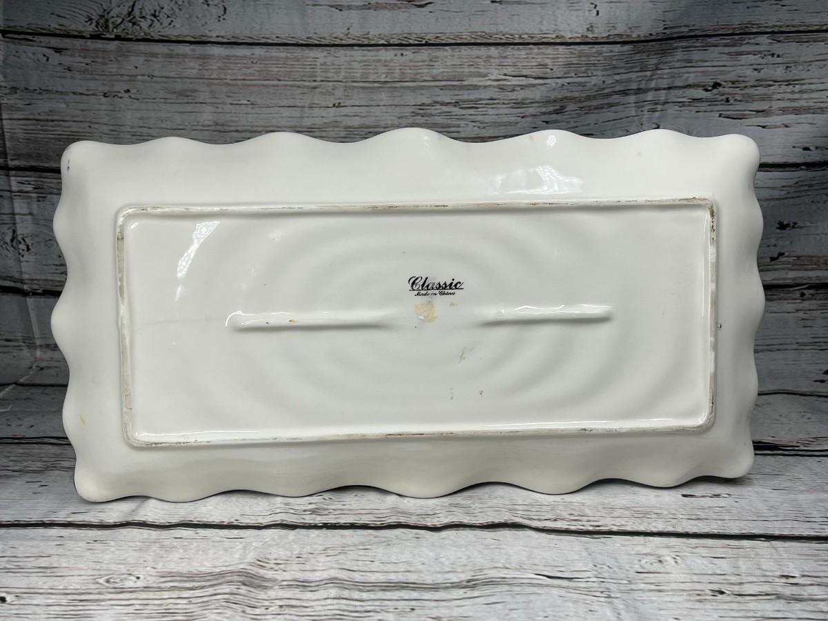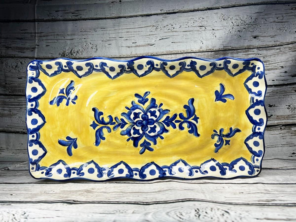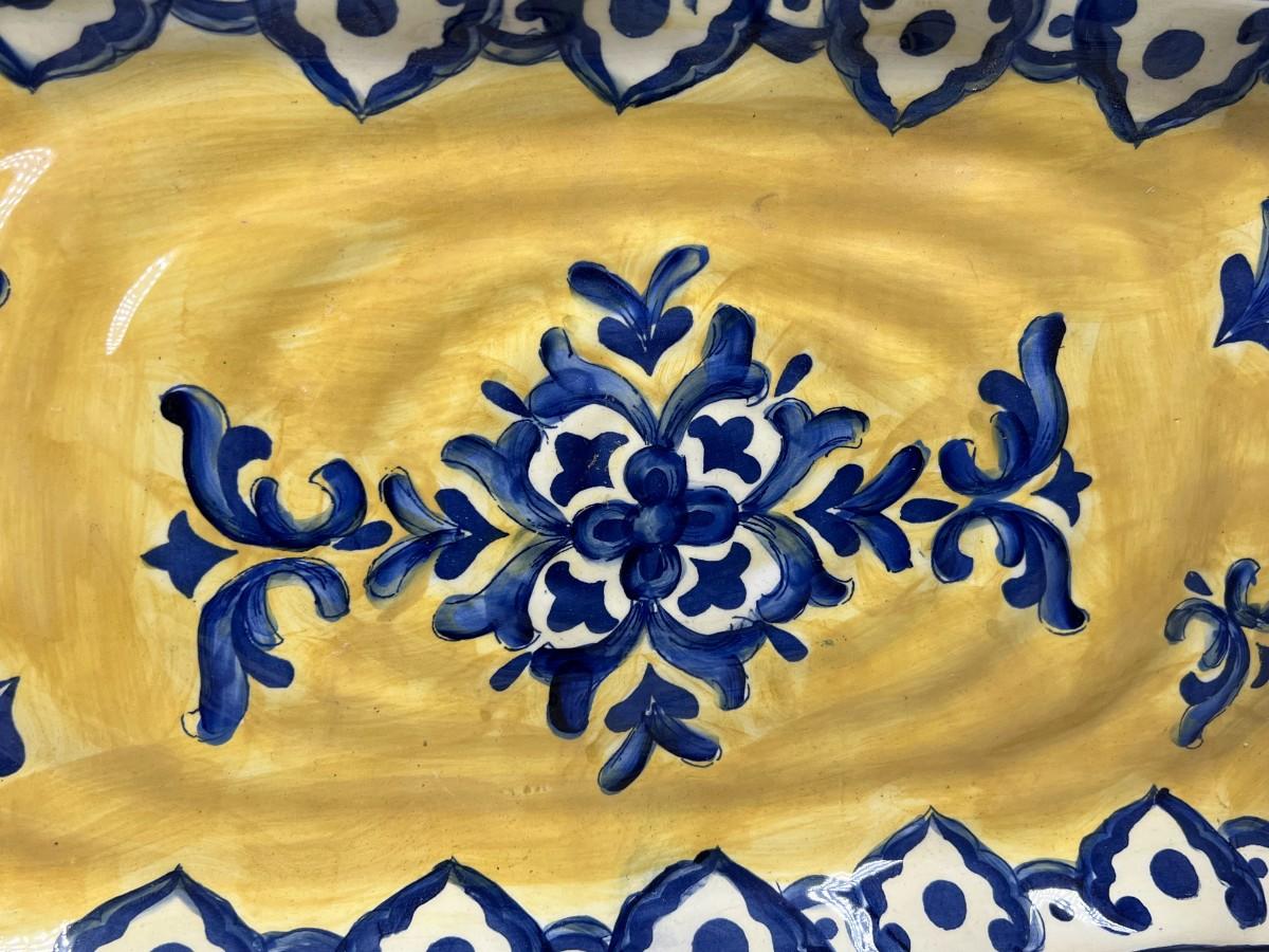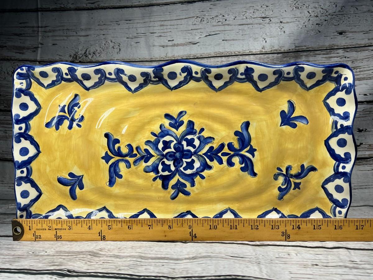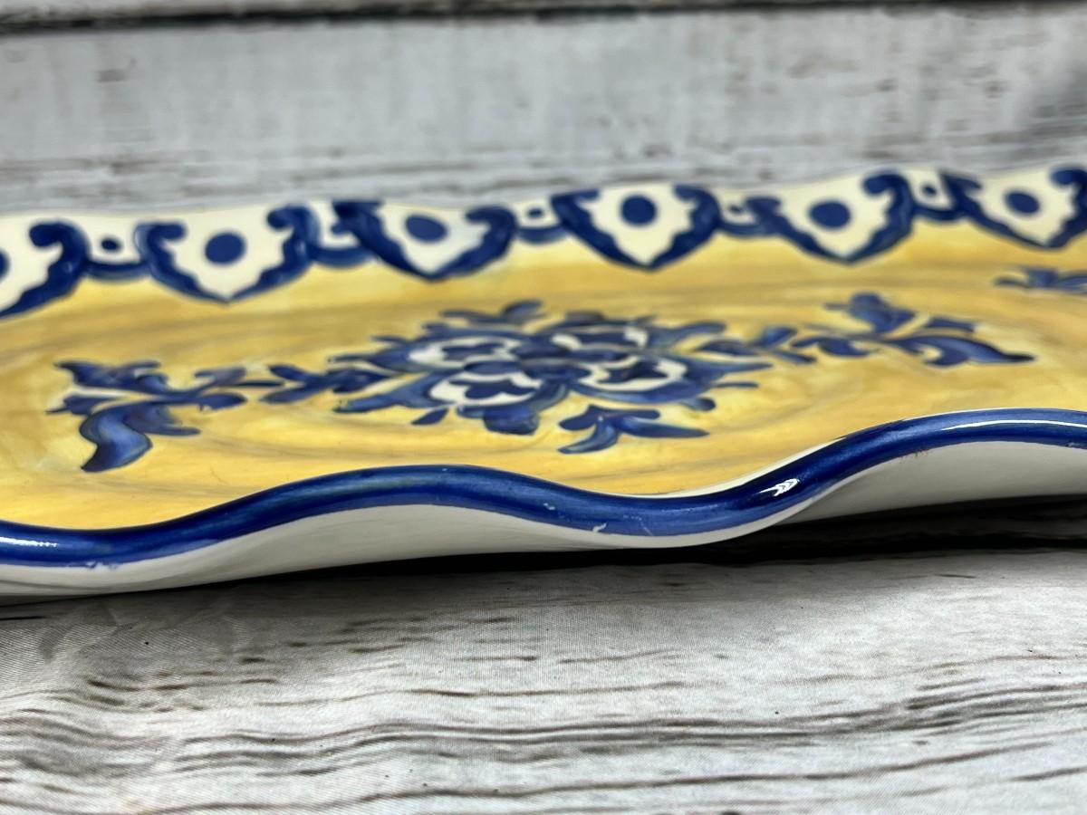 Ceramic Yellow Decorative Ruffled Edged Serving Plate Dish, there is some light wear, but there is no significant damage and is in good useable condition. Check pictures for more details and for sizing.