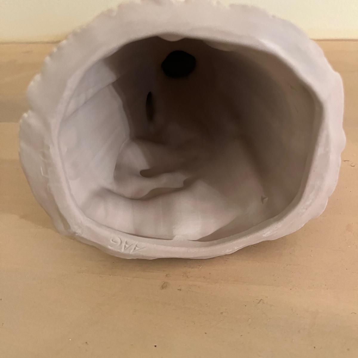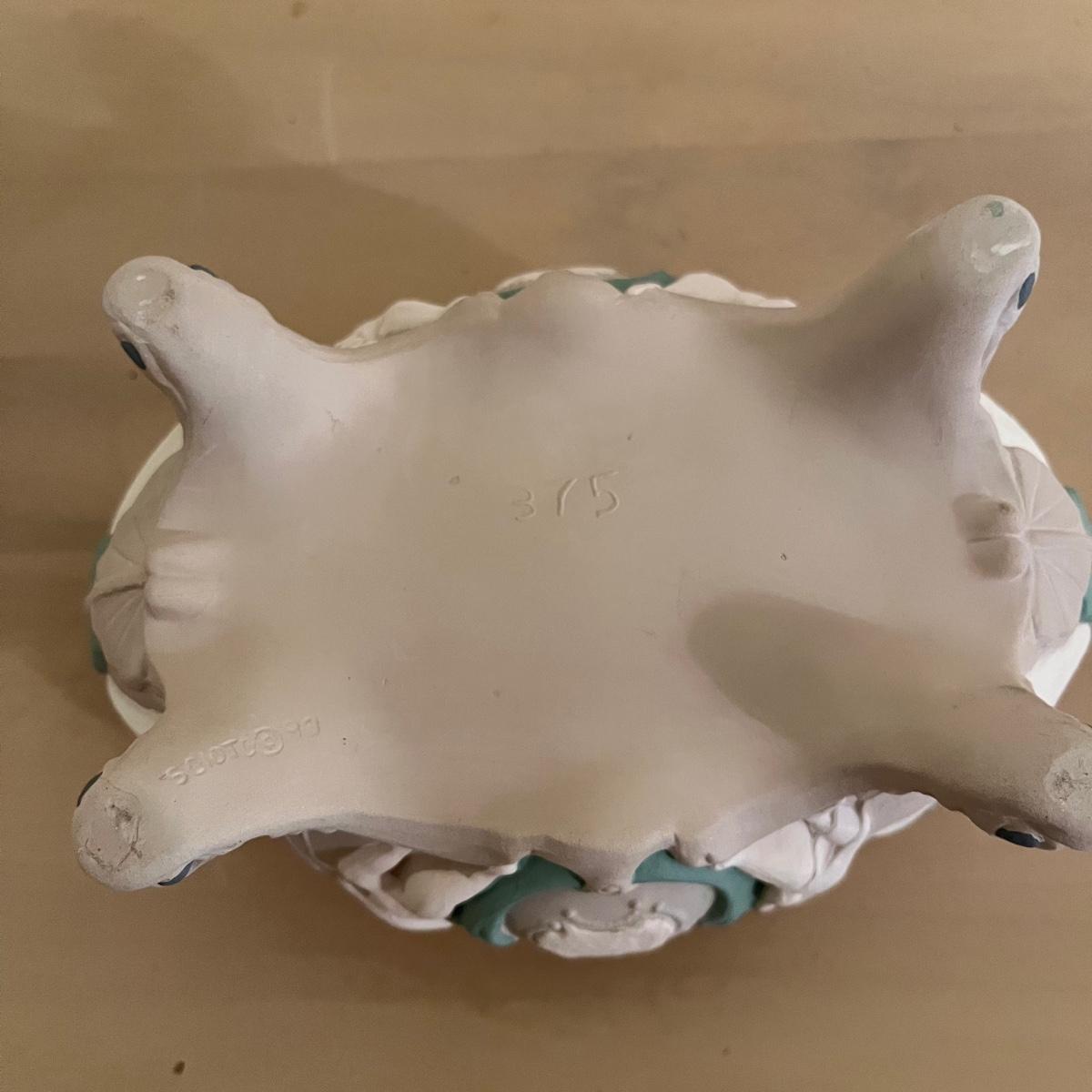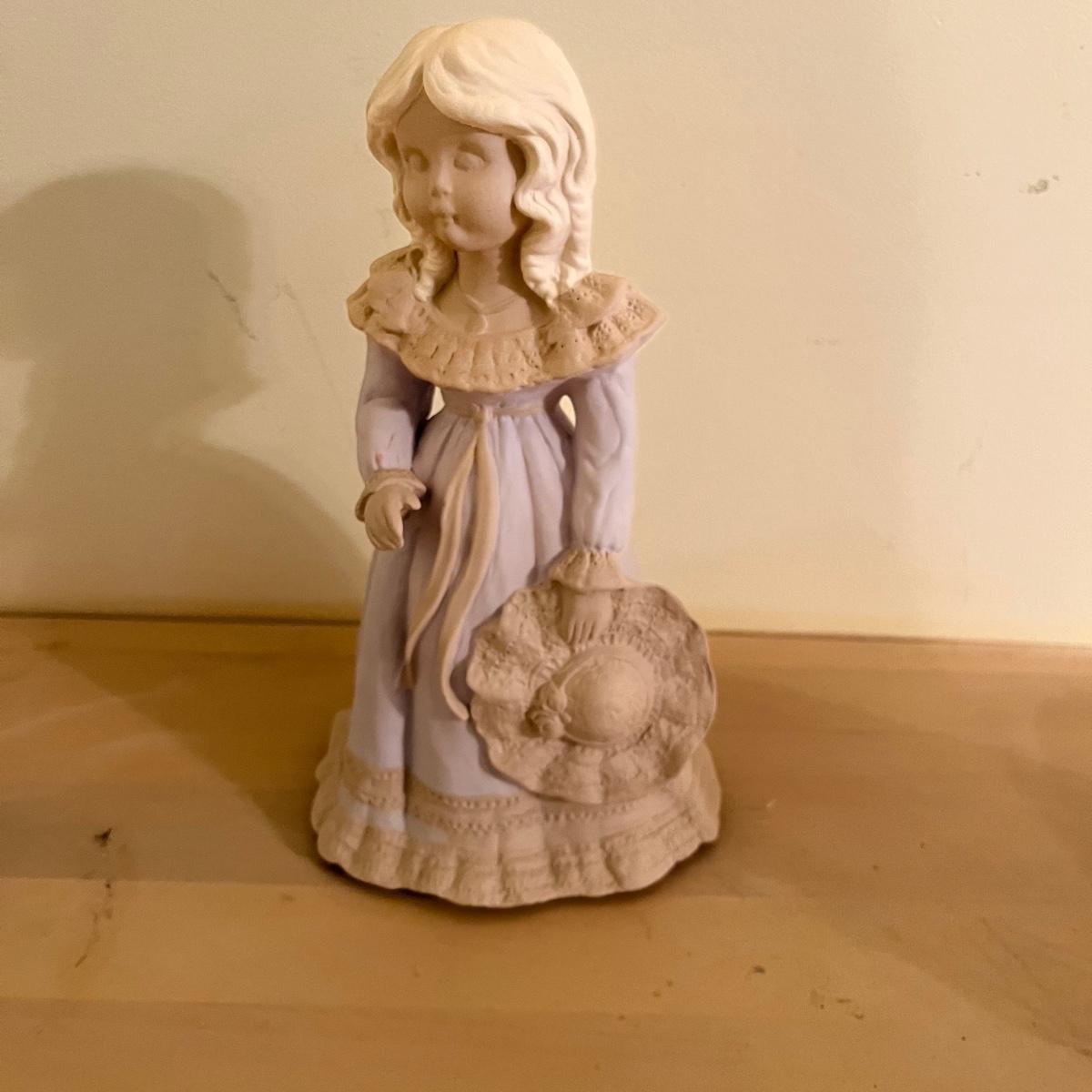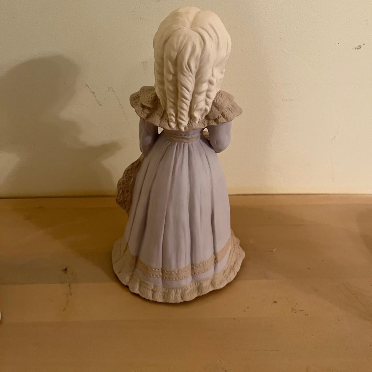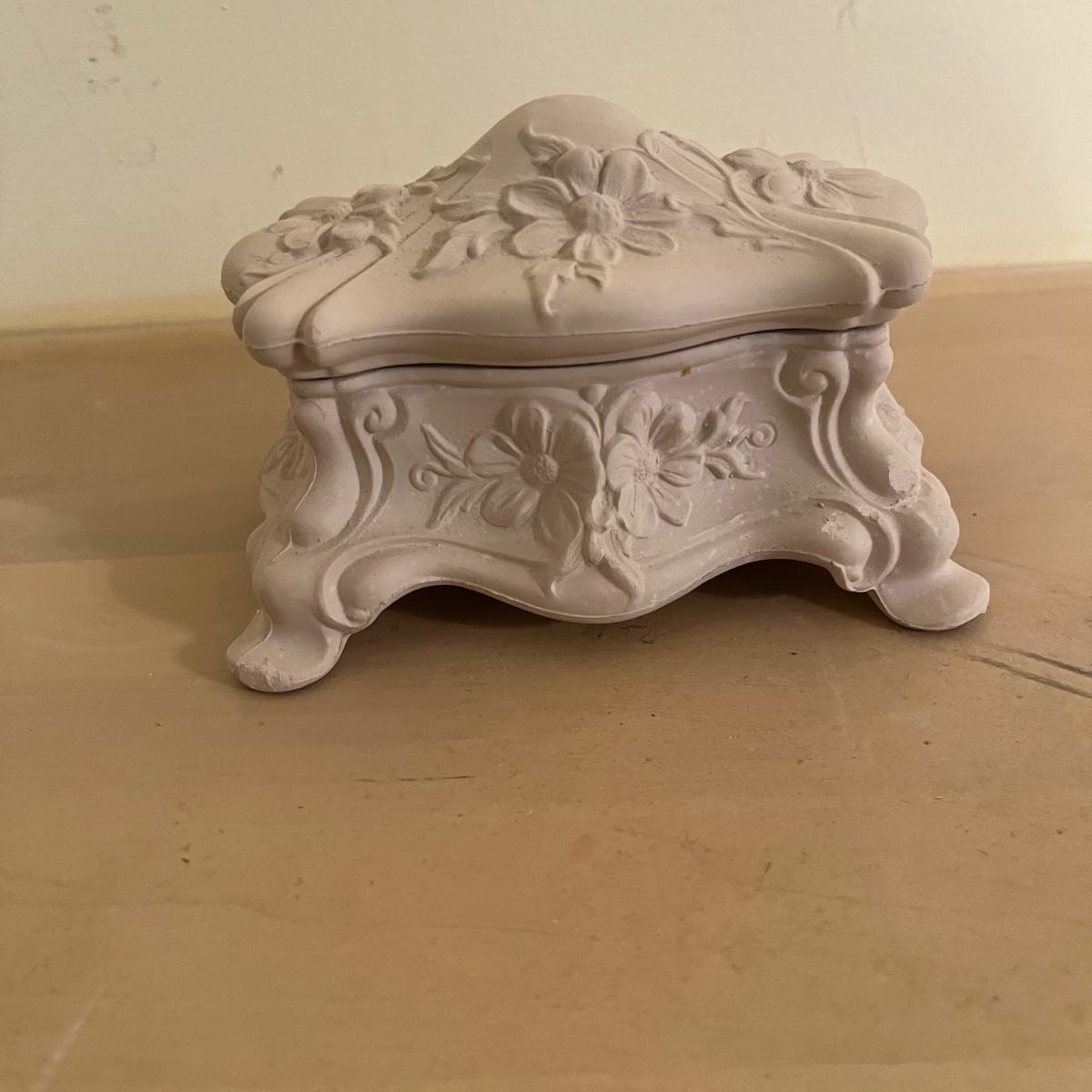 Lot includes one painted and one unpainted ceramic box and a painted ceramic figurine that measures 4.5” D x 8.5” tall.
