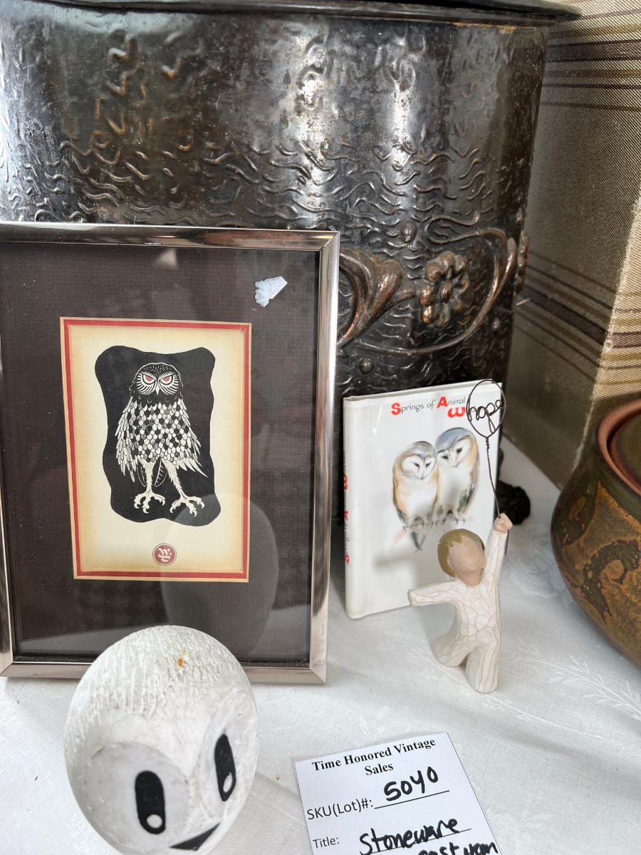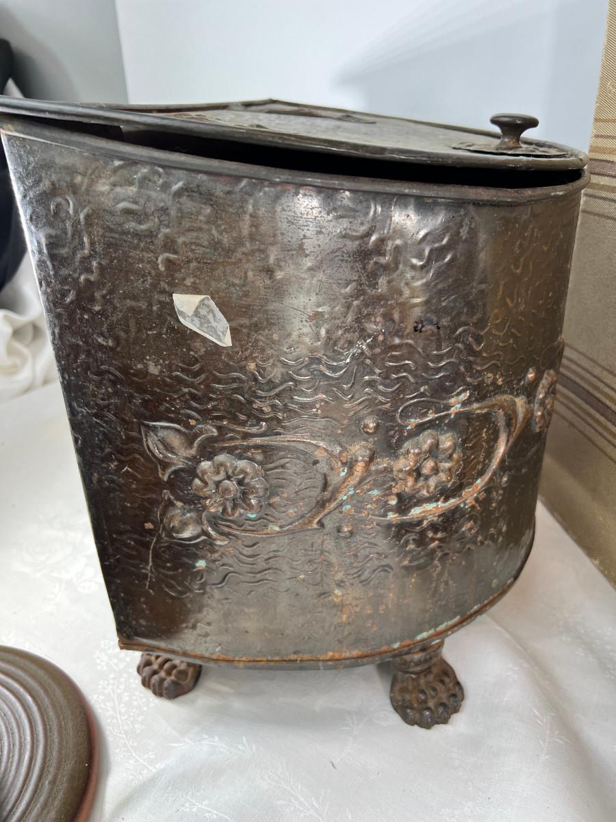 Ceramics, indigenous, stoneware, antique metal ash carrier