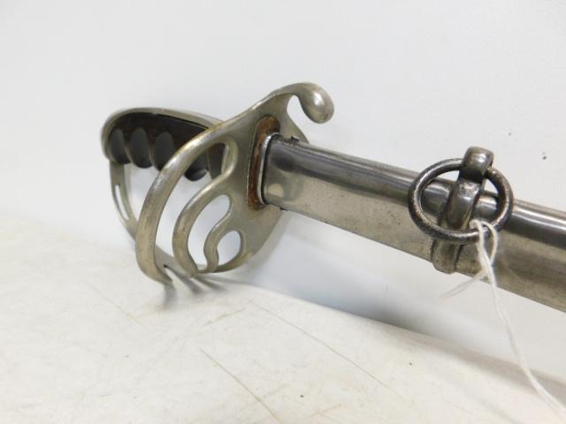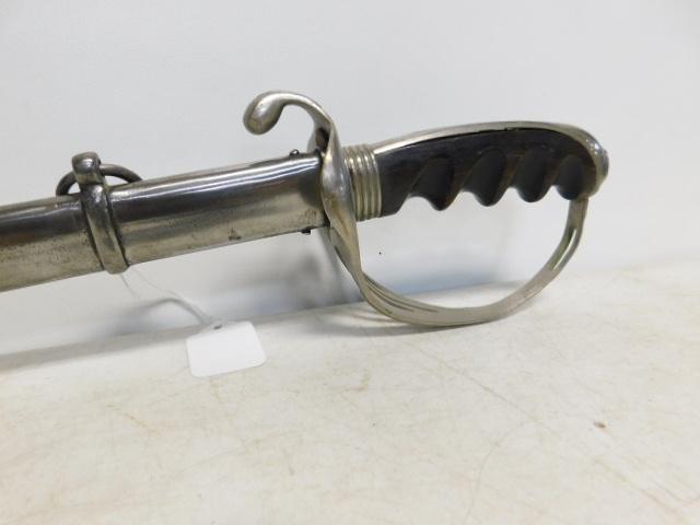 Vintage M. C. Lilley Ceremonial Officer's Sword with Sheath Columbus, Ohio Scrolled Blade
