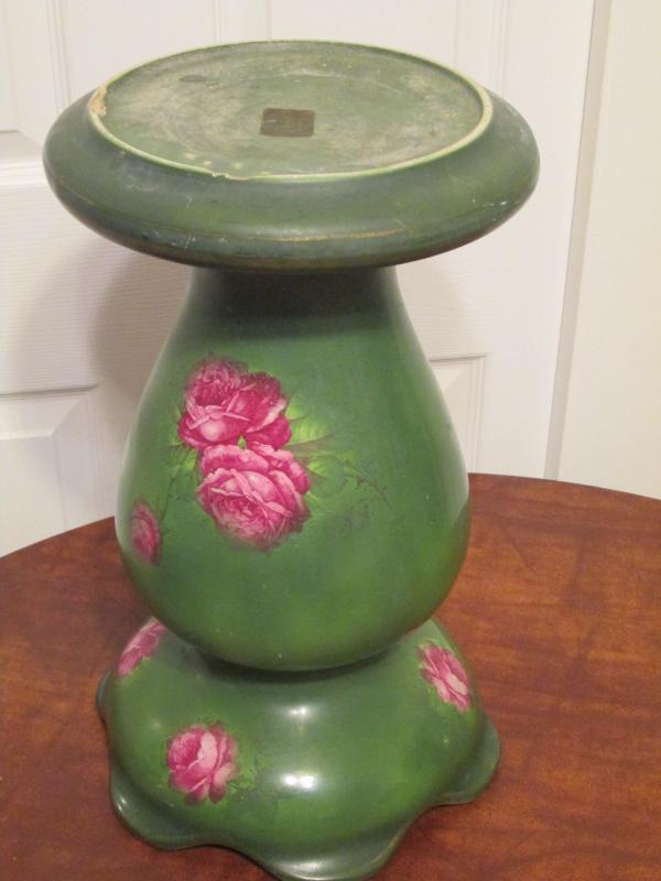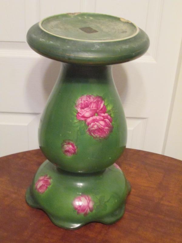 Cermaic Jardiniere Pedestal 17" Green with flower design approximately 17 inches high