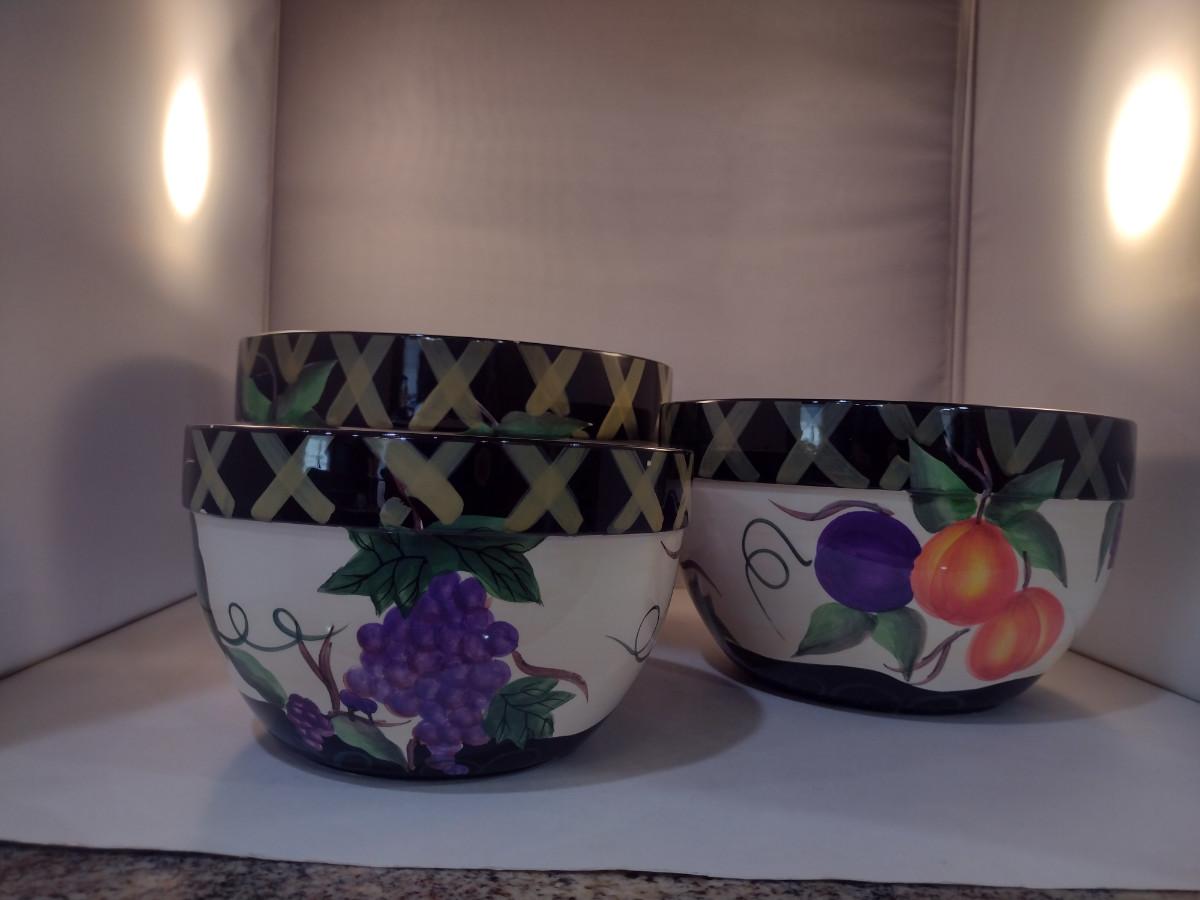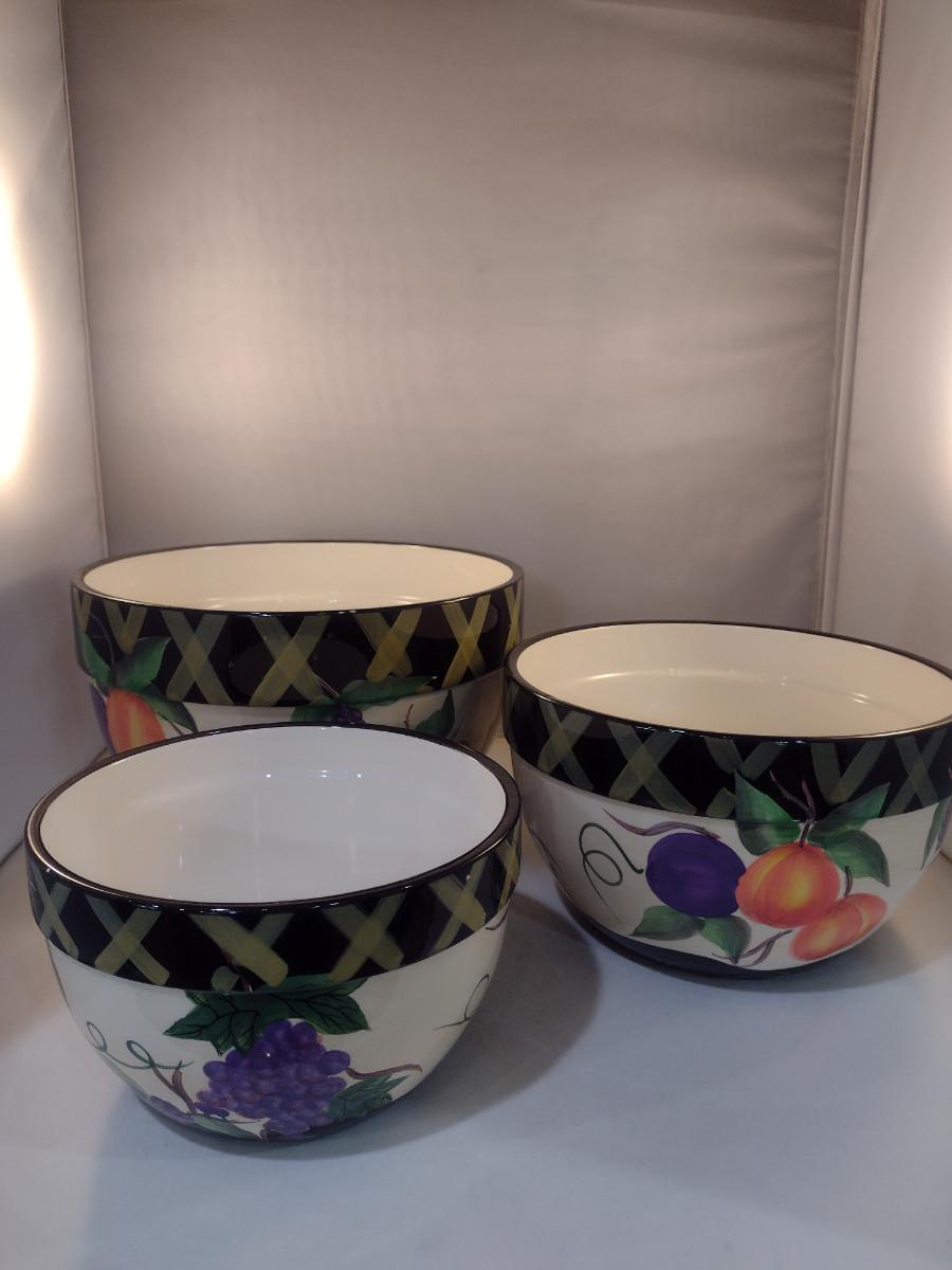 Certified International Hand Painted, Nesting Ceramic Bowls- Three Pieces- 11", 9 1/2", and 8" in Diameter