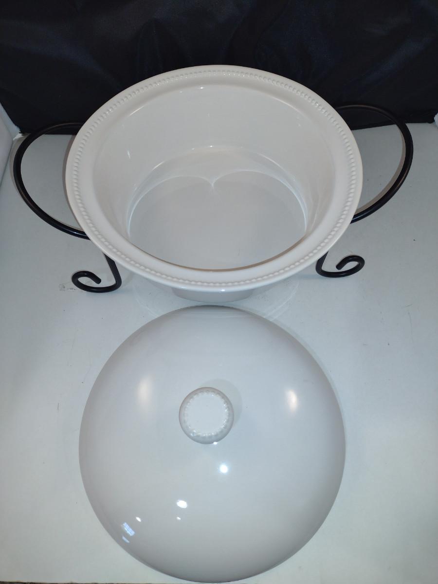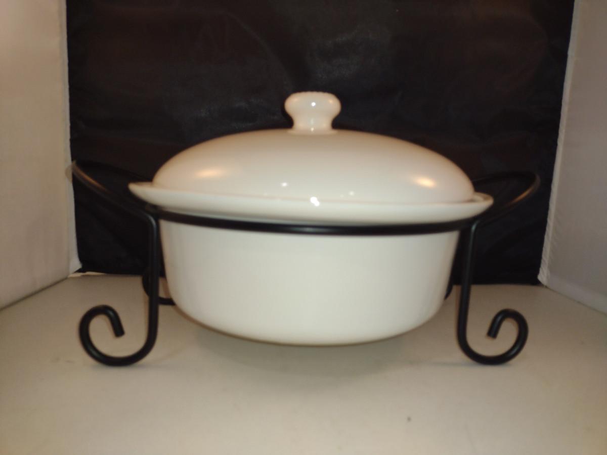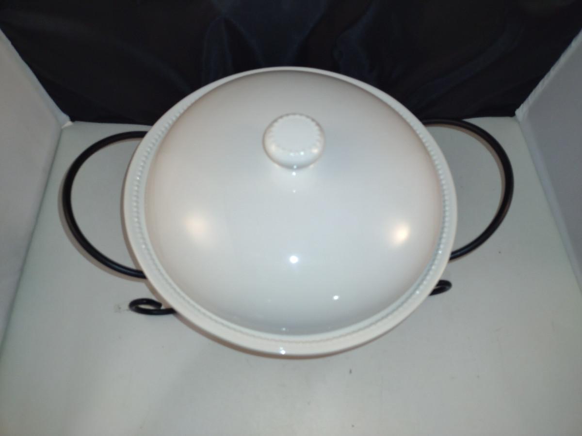 Certified International Porcelain Covered Vegetable Bowl with Metal Stand- Approx 11 1/4" in Diameter
