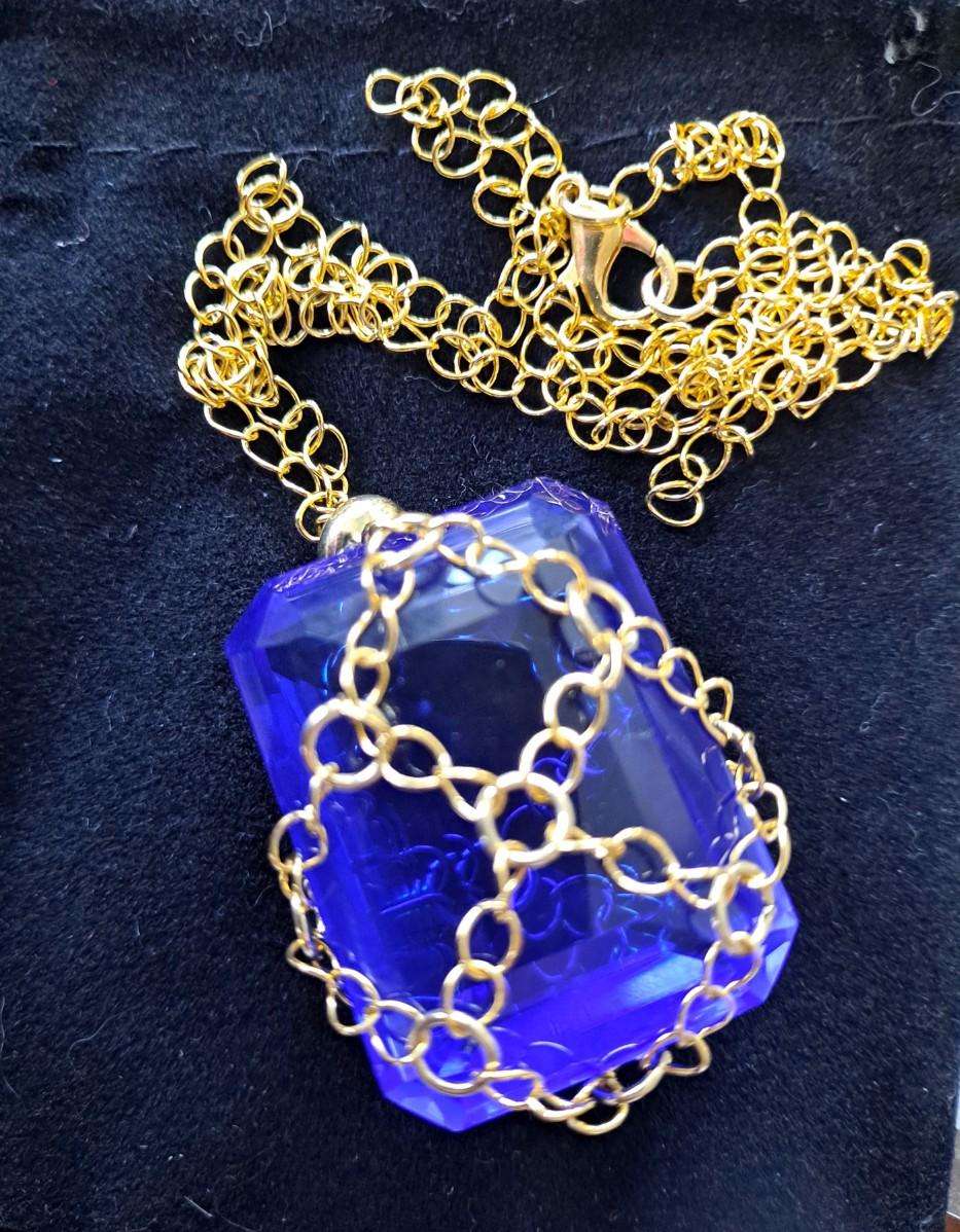 Beautiful gemstone is certified set in a pendant chain 18 karat gold overlay certification included gemstone is heat treated