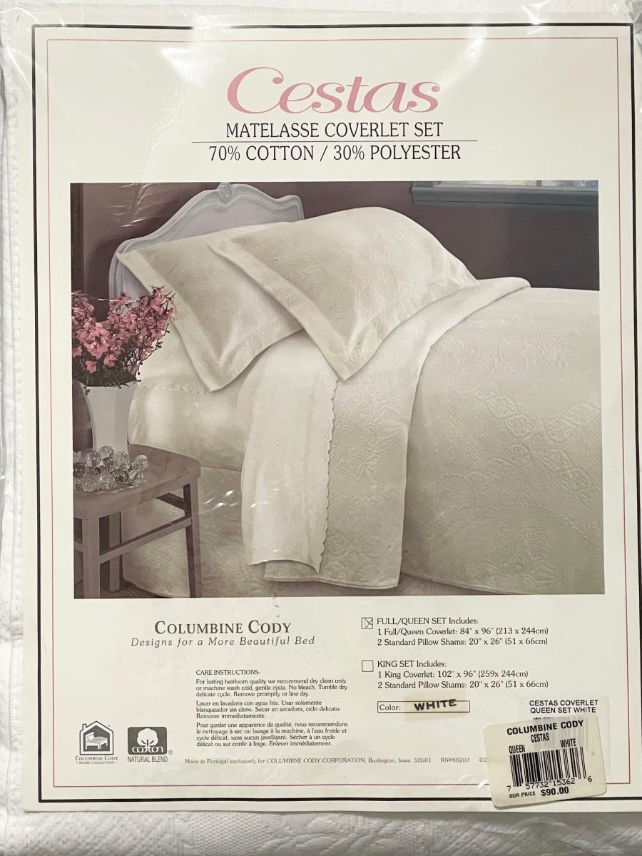 CESTAS ~ Matelasse Queen Coverlet Set ~ New