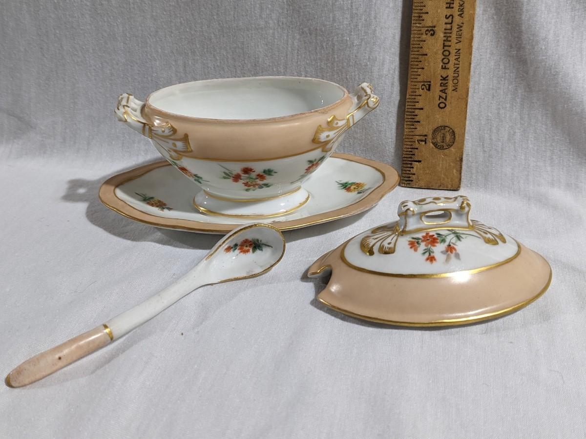 CF Haviland Porcelain Gilt Gold Mustard Pot, Exc Condition