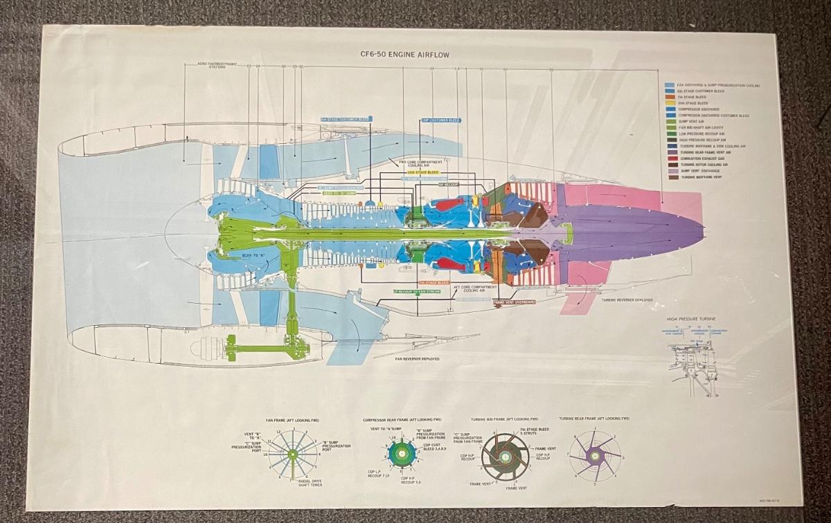 Jet Engine Poster: GE CF6-50 Engine Airflow (Quantity 2)
