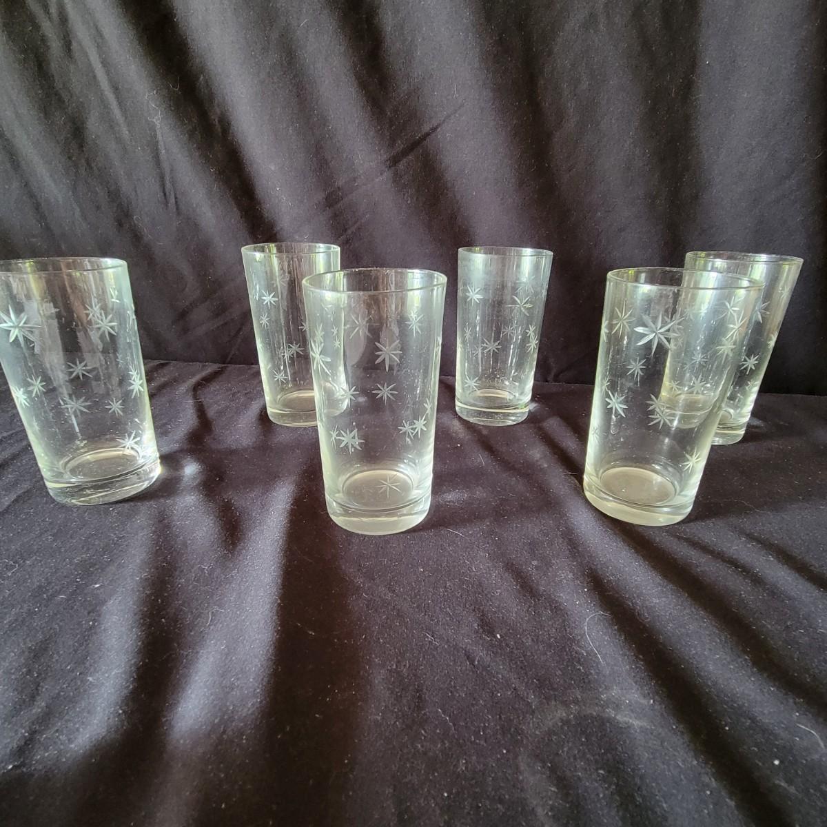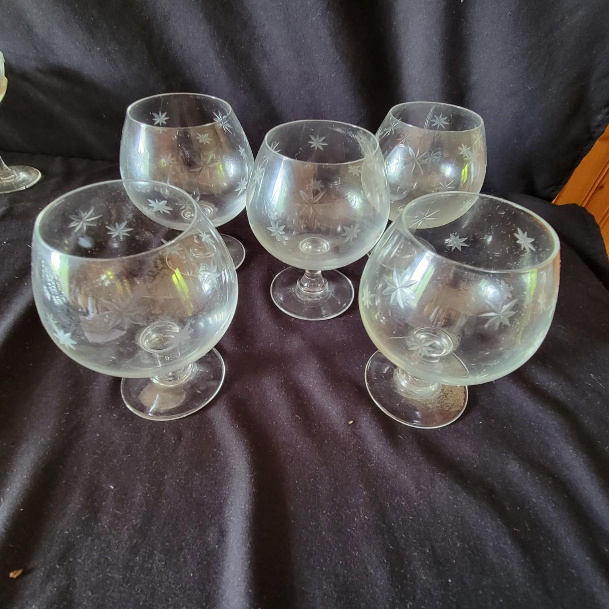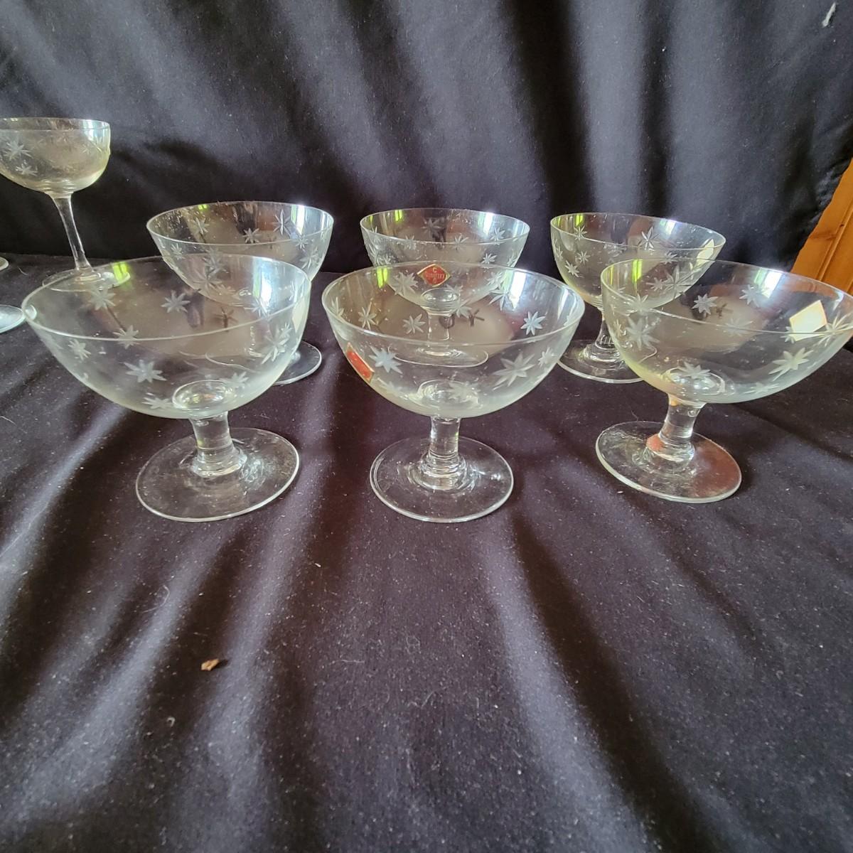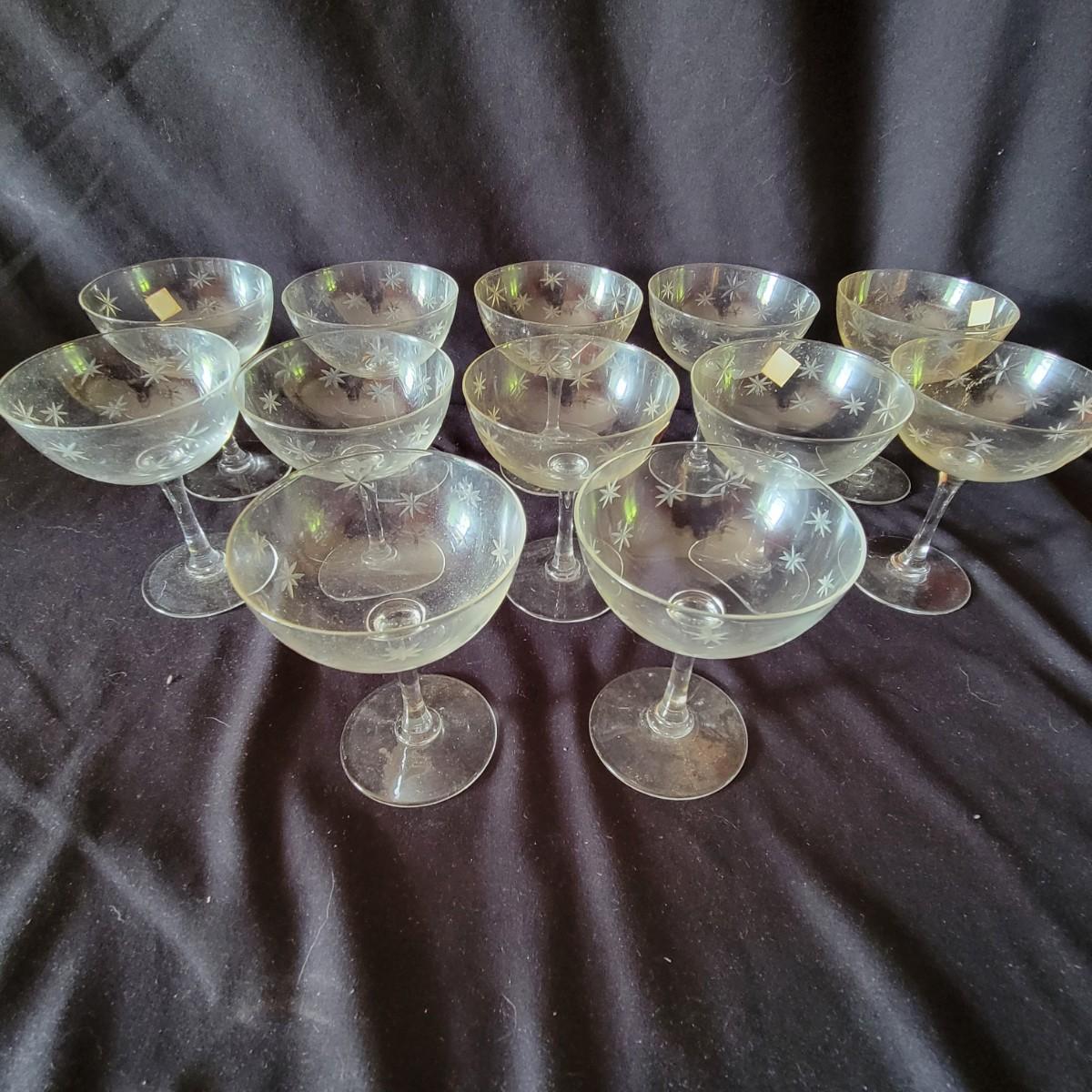Assortment of 52 Quartex crystal glasses made by CG in a stardust pattern that date from pre 1950. 9 different patterns in the assortment with varying quantities of each. See photos for amount in each pattern. Tallest glass is 7" tall.