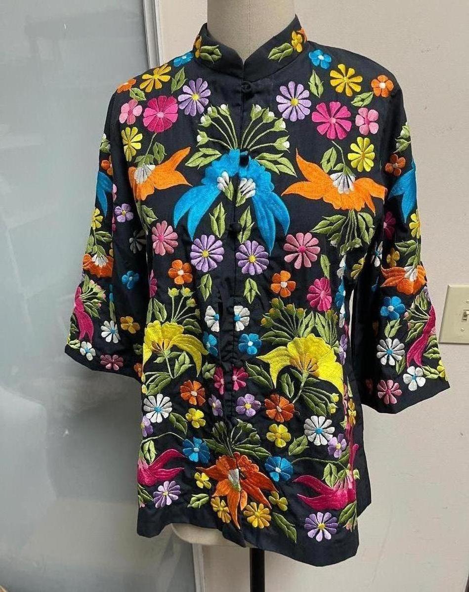 Vintage Embroidered Floral Tunic Chuchi Asian Spring Top Jacket