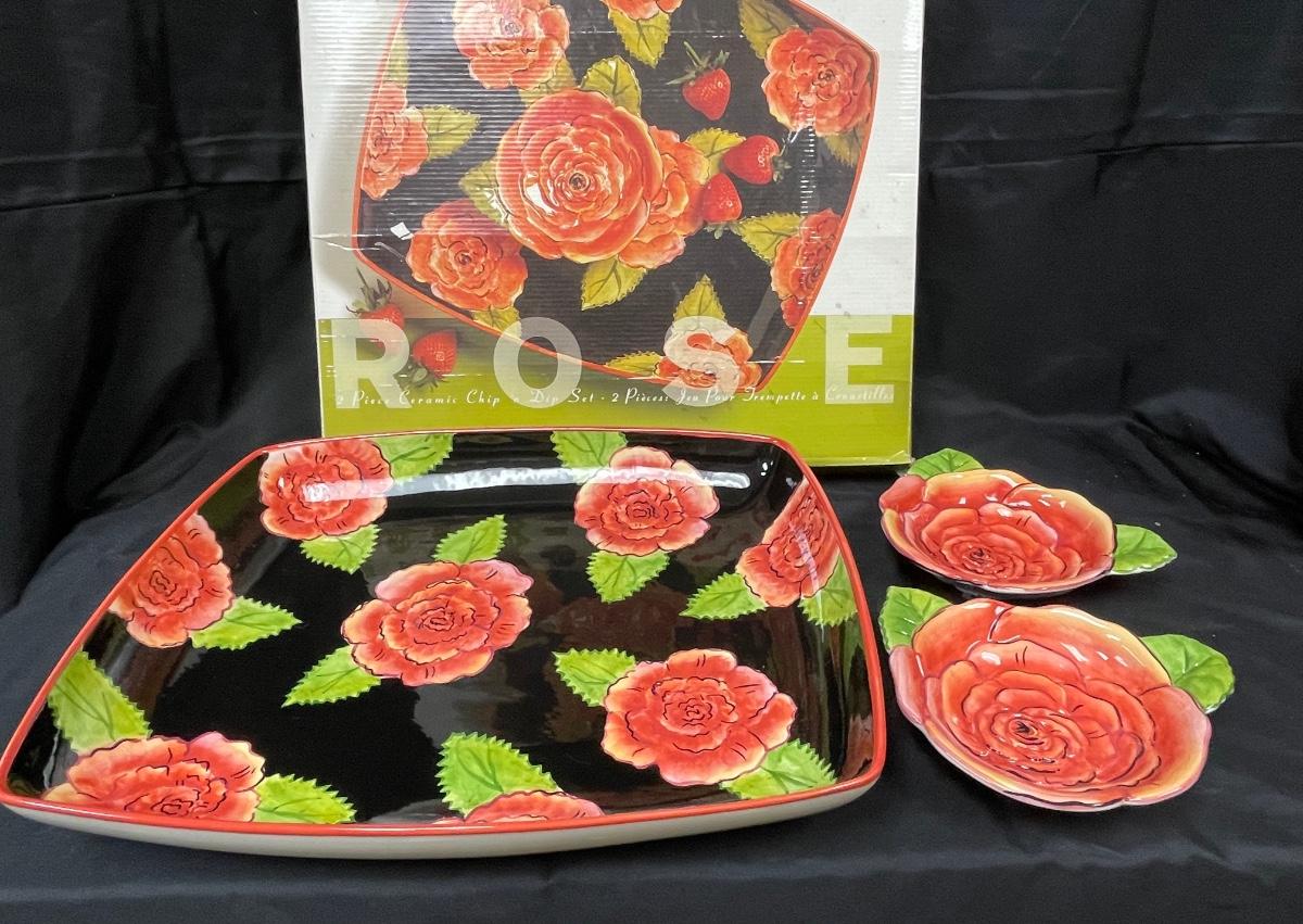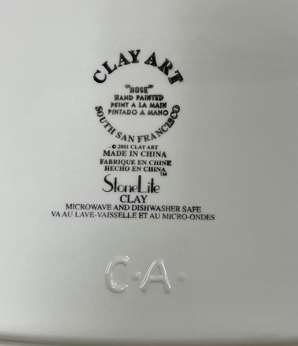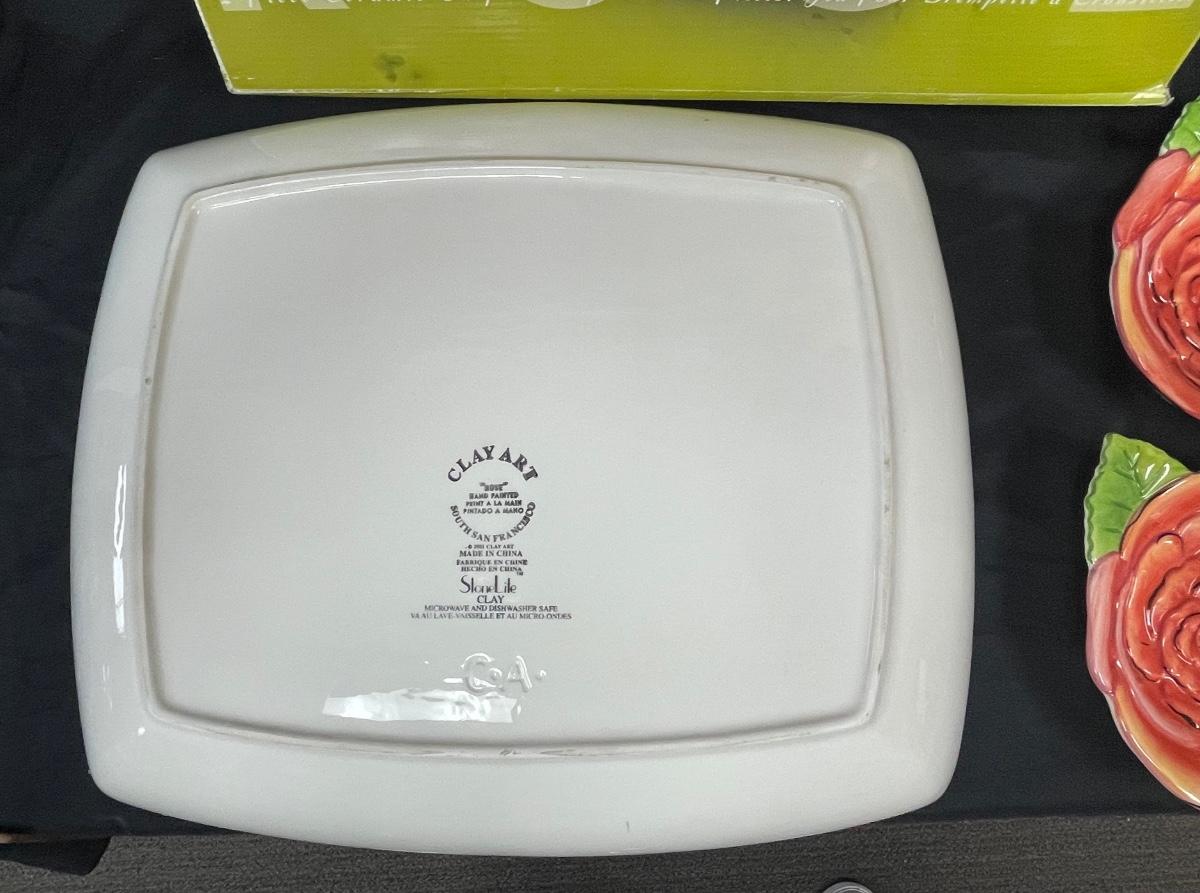 StoneLite "Rose" Clay Art Hand Painted Serving Set 2001 San Francisco