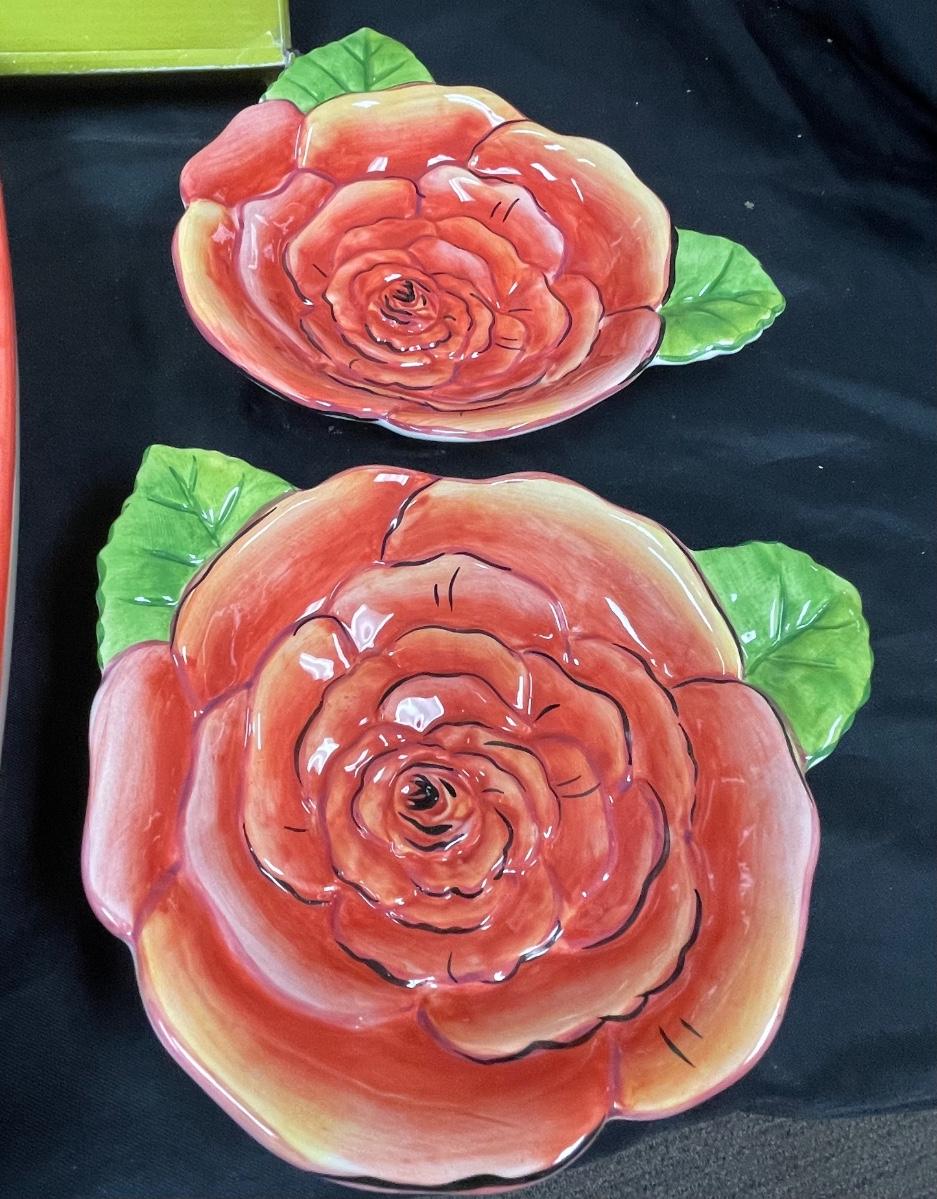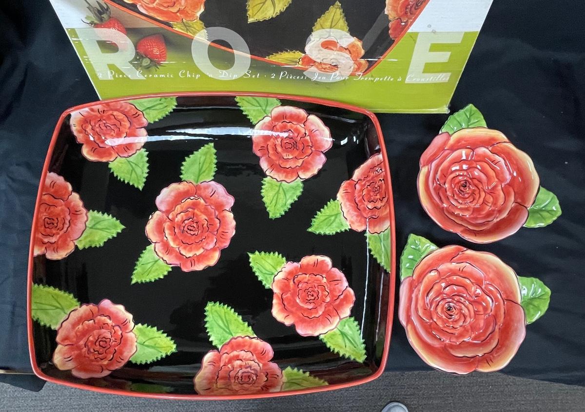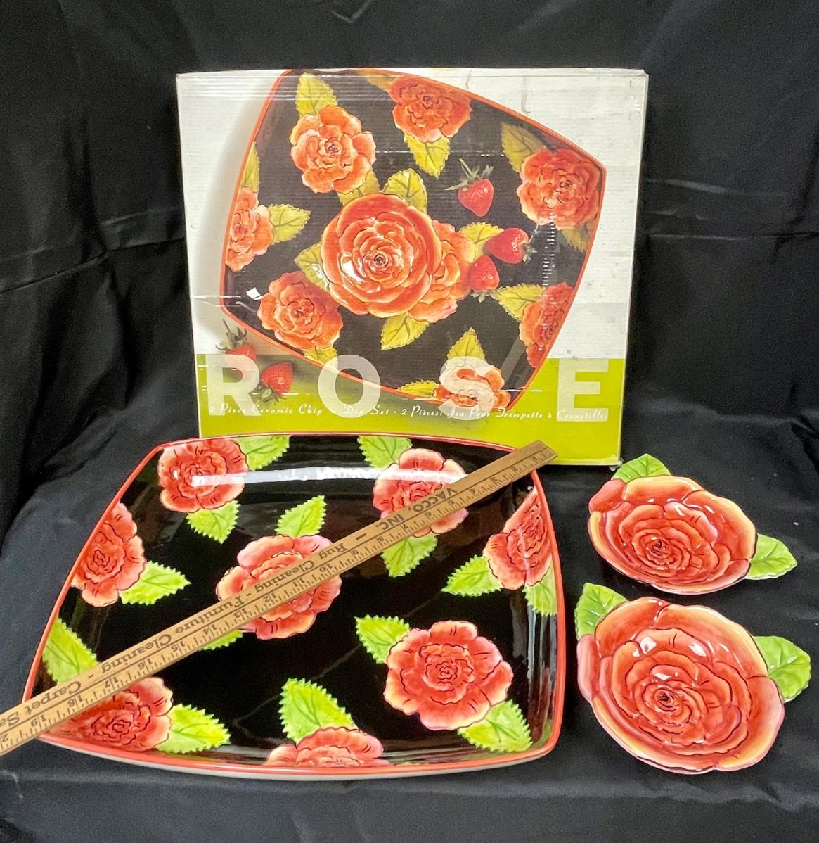 StoneLite "Rose" Clay Art Hand Painted Serving Set 2001 San Francisco
