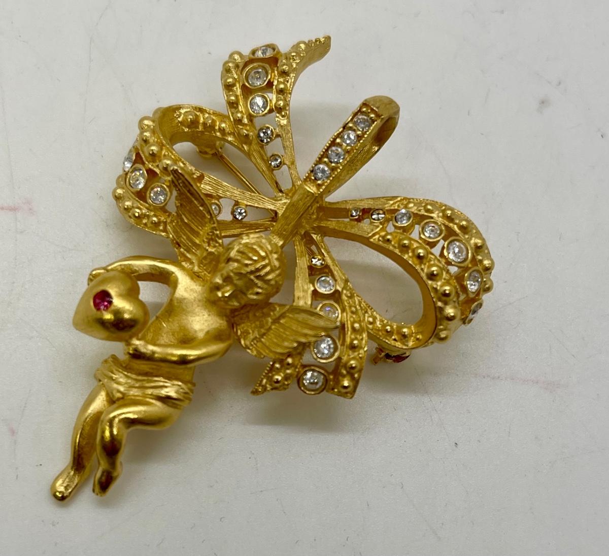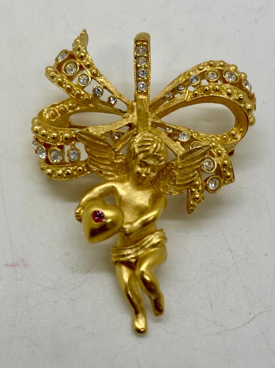 Vintage JBK Camrose & Kross Angel Cherub Rhinestones Large Pin or pendant
