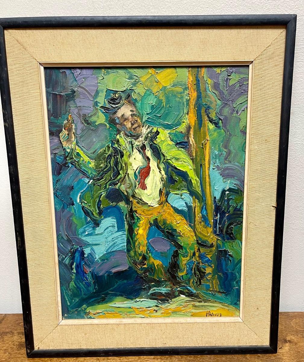 Drinking Clown Framed Oil on Canvas Artwork, signed