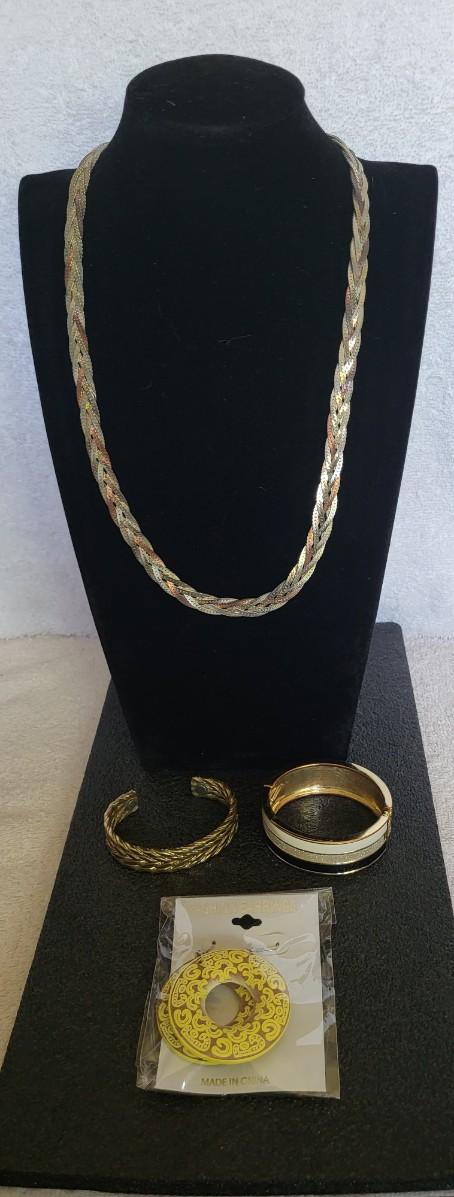 CHAIN NECKLACE, BRACELETS AND BROOCH