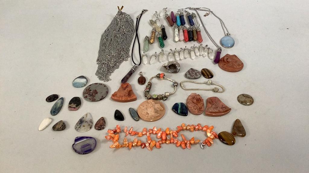 Nice selection of pieces to create your own Â…large group of silver chains..with a lift top showcase