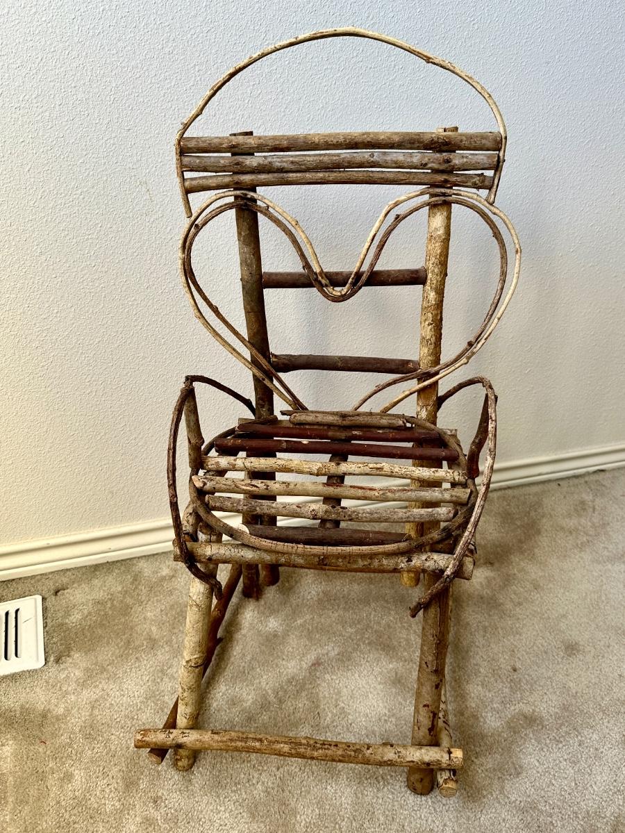 Handmade twig chair 29 inches. Doll sold in a separate lot.