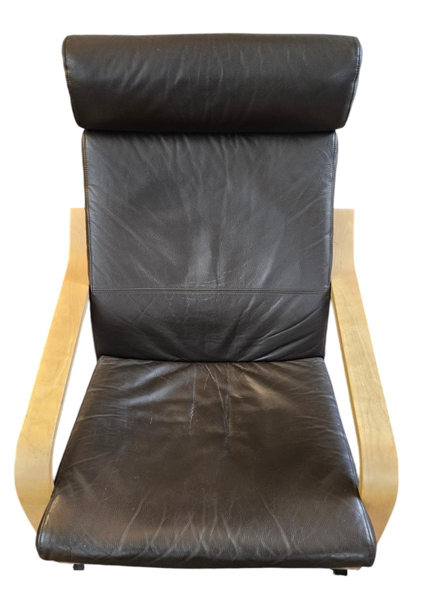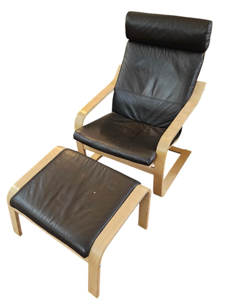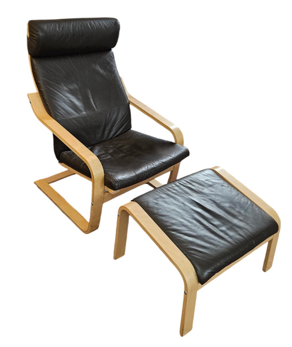 Ikea Poang Armchair Brown Leather with Foot Stool