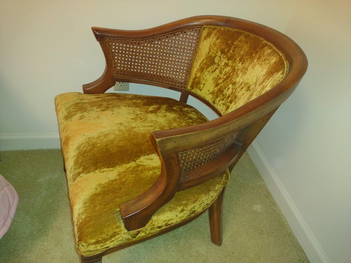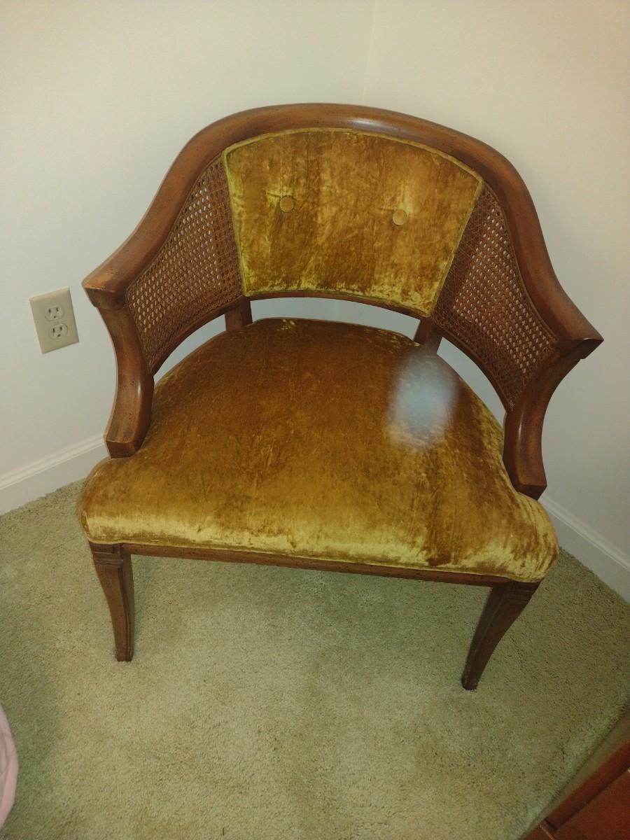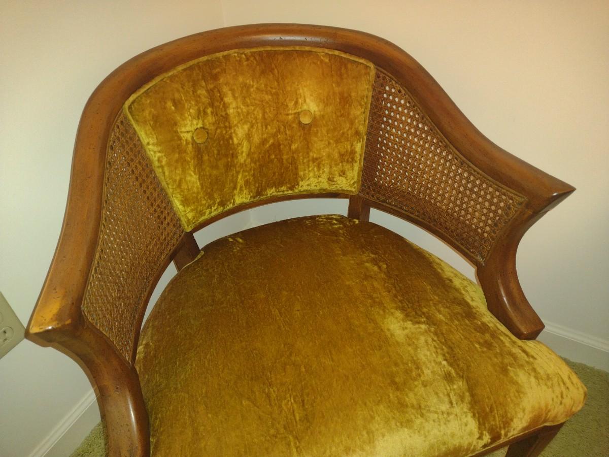 Vintage Upholstered Wood Framed Chair with Cane Finish