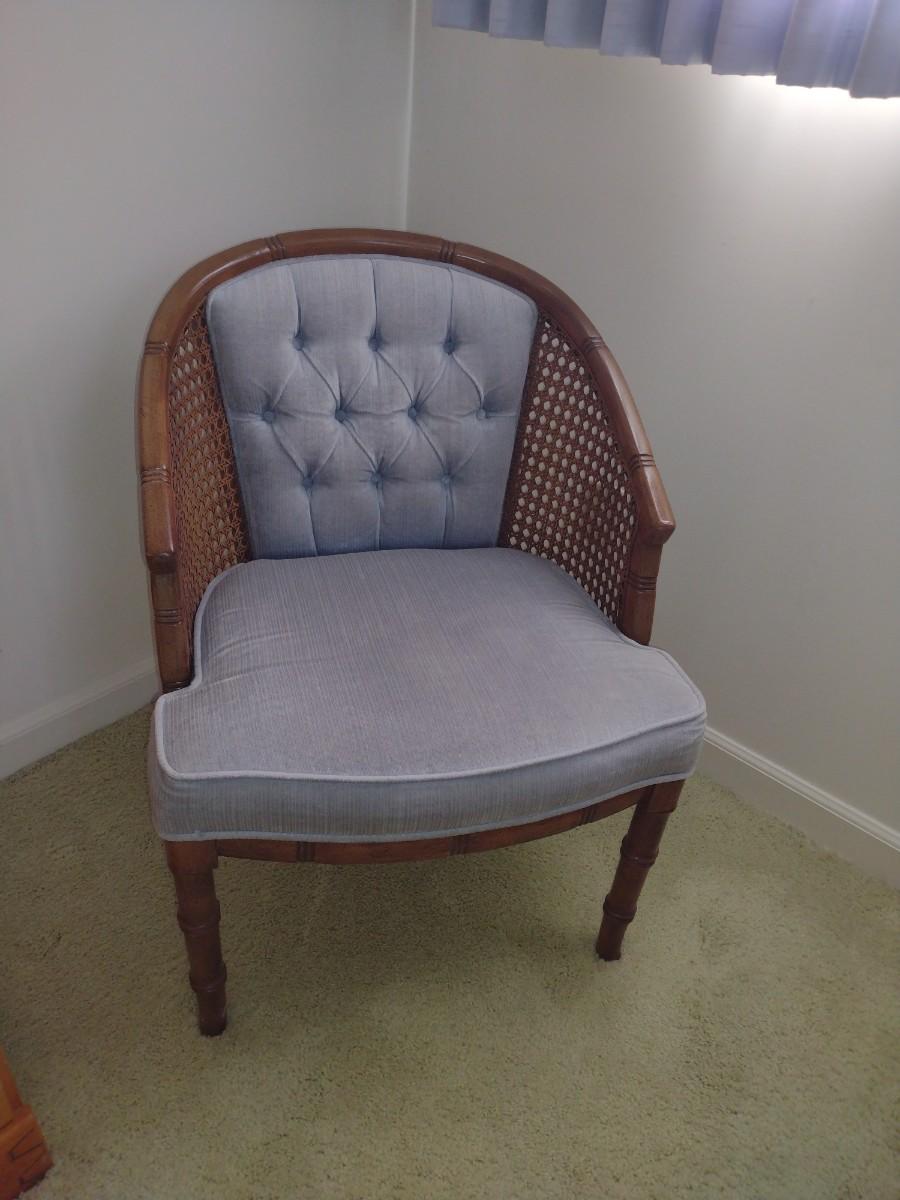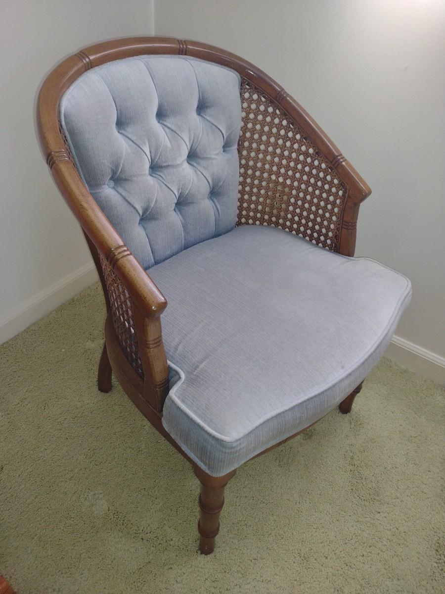 Vintage Upholstered Wood Framed Chair with Cane Finish