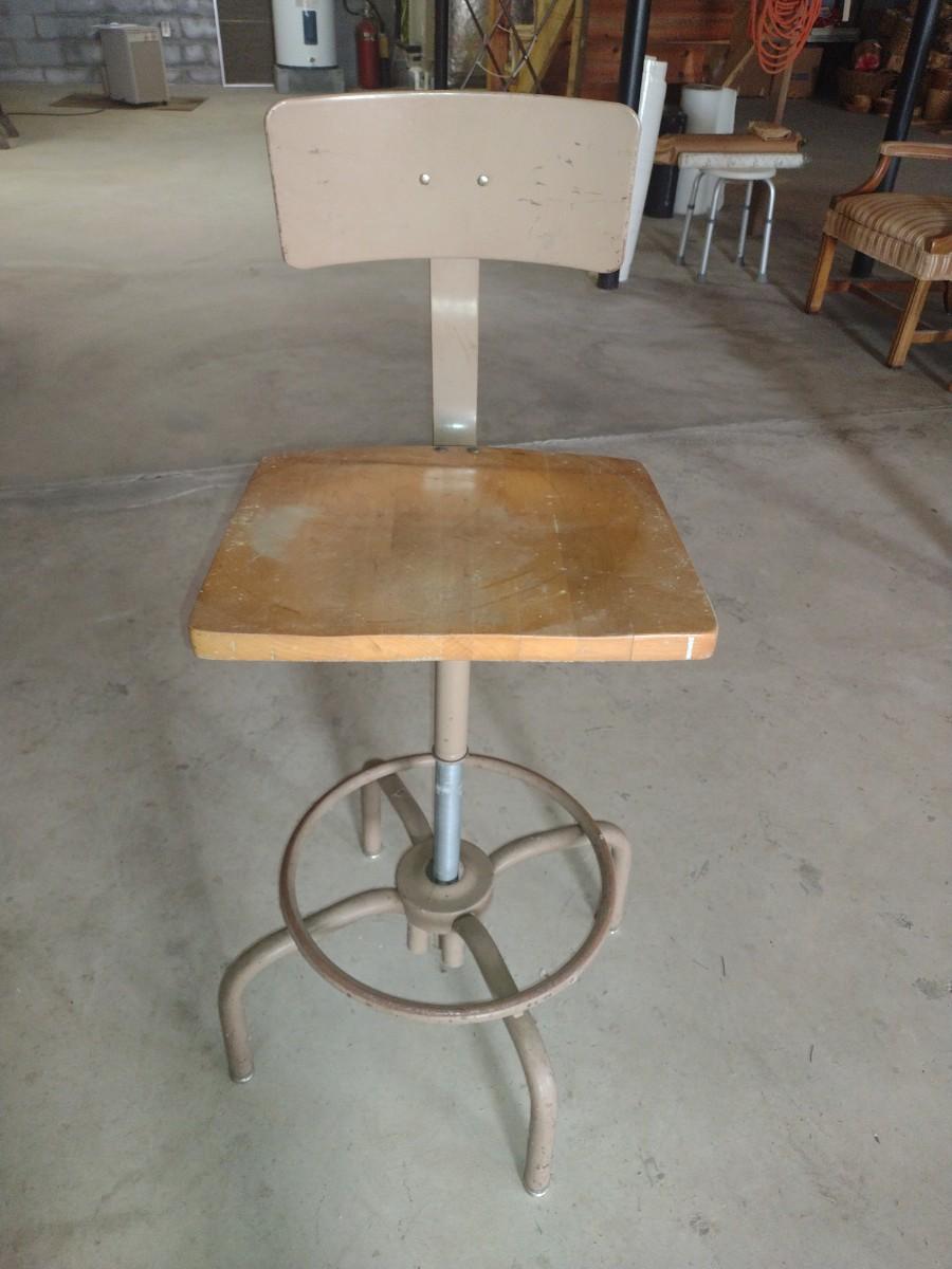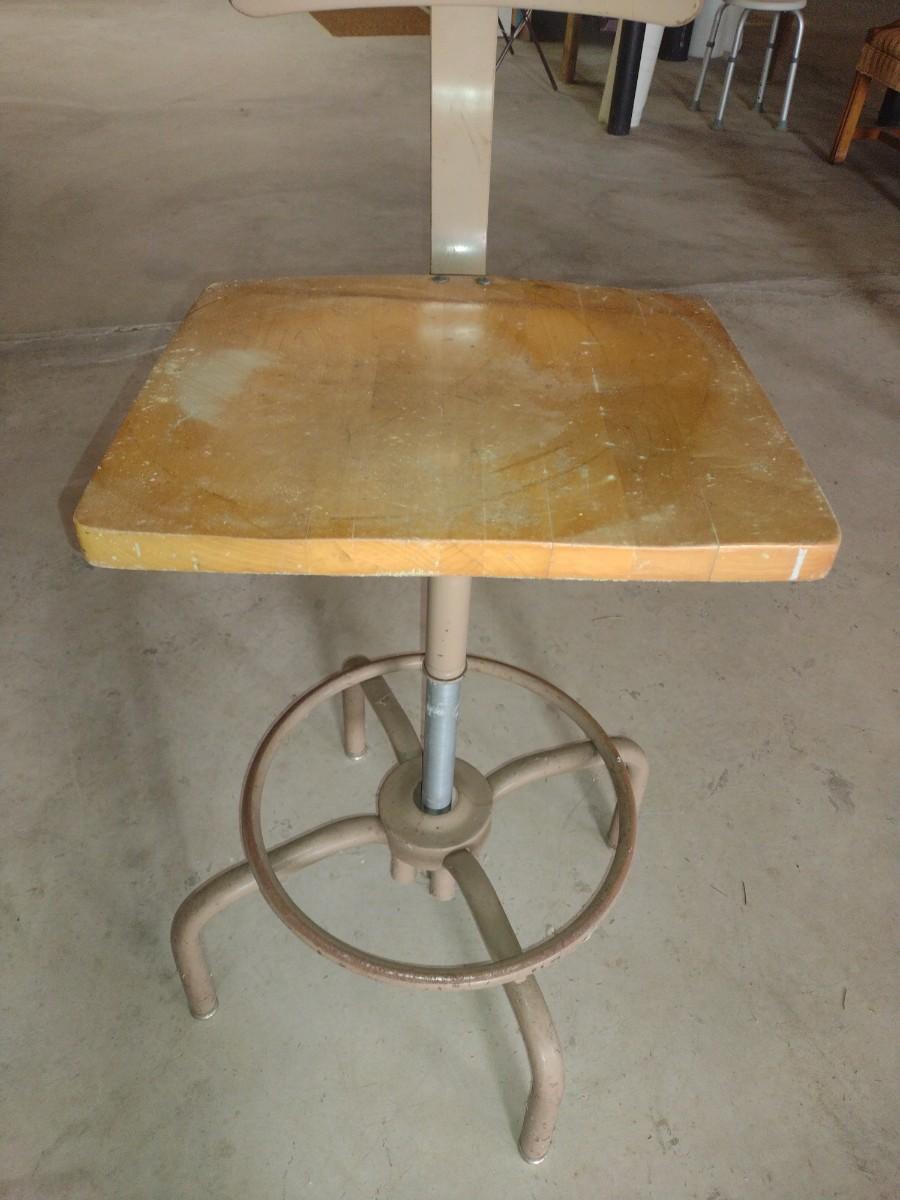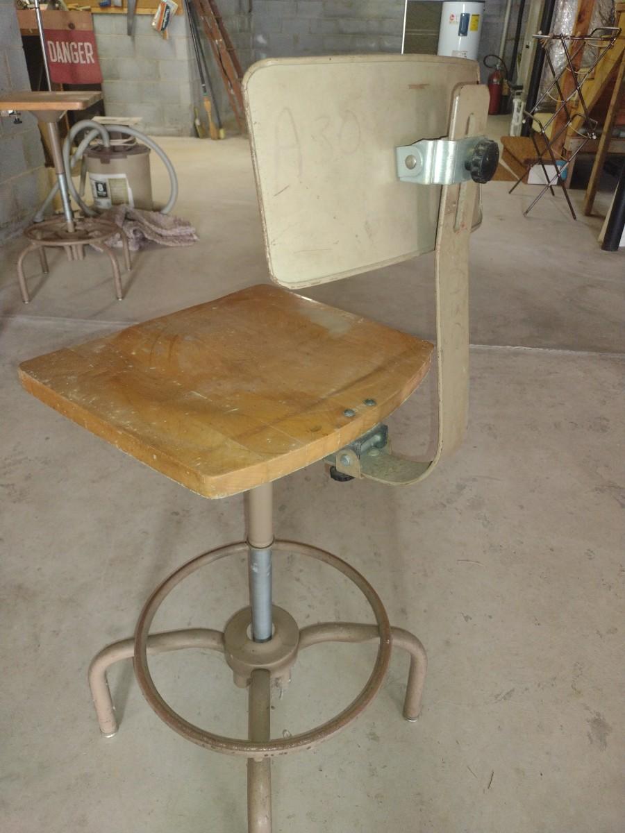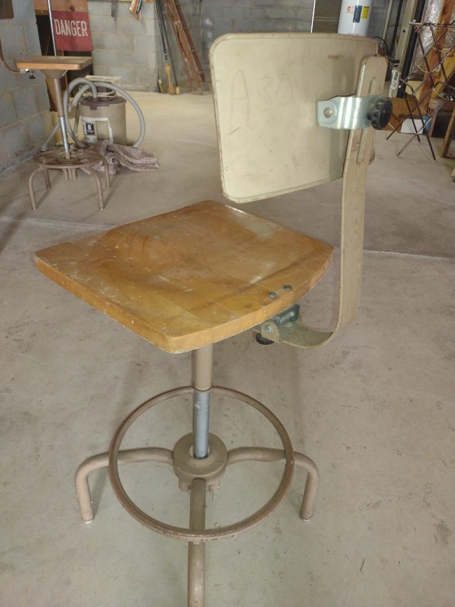 Vintage Industrial Ajusto Shop Chair Metal Frame with Solid Wood Seat Choice A