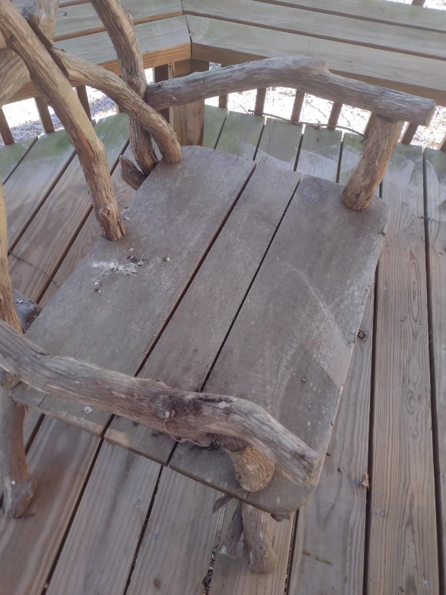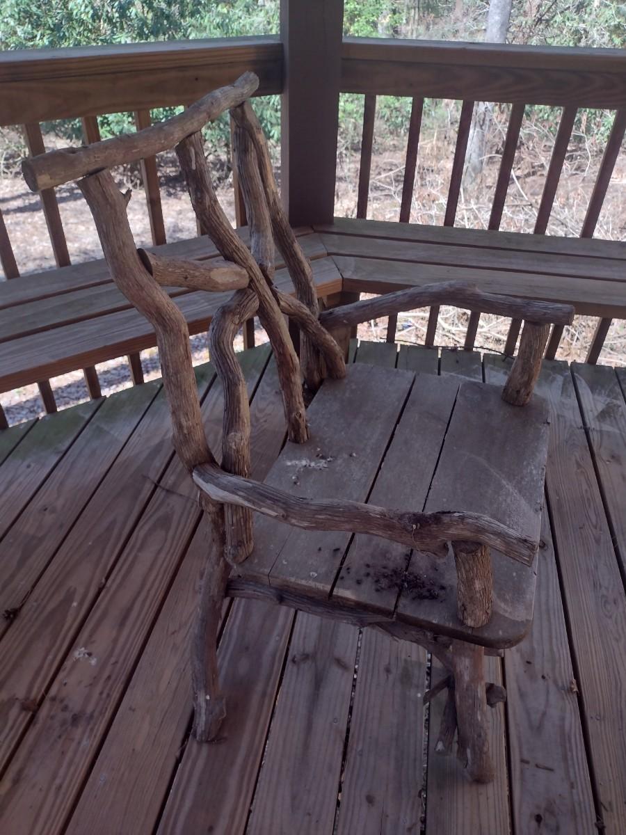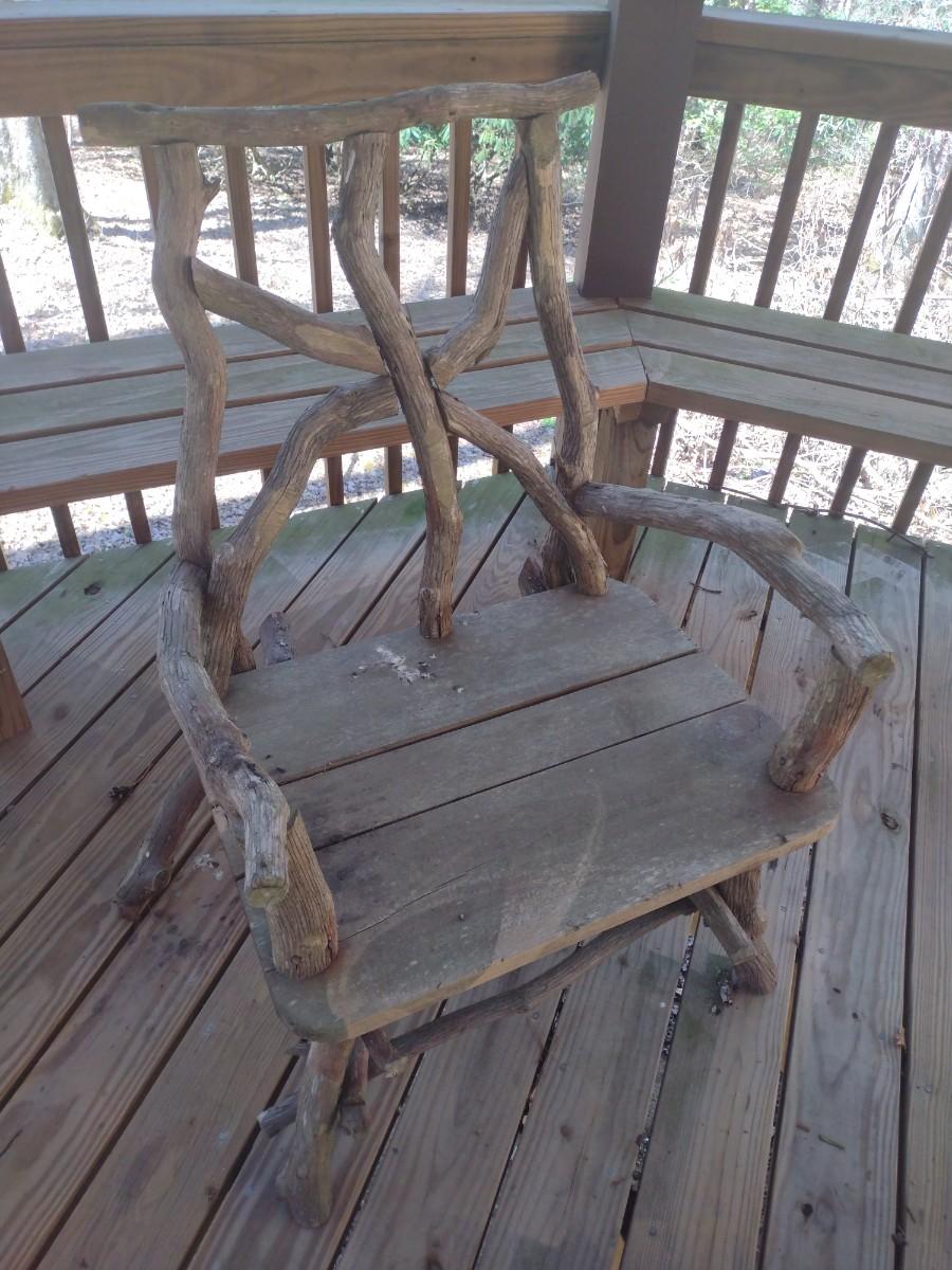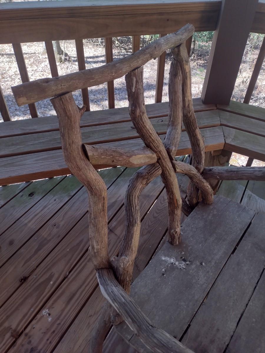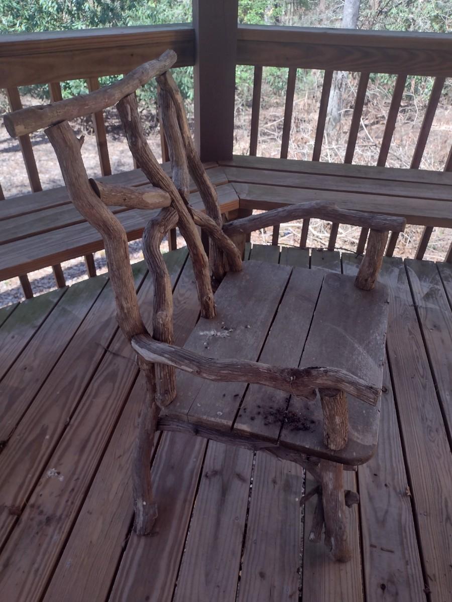 Twig and Log Cabin Outdoor Chair PLEASE NOTE:. Due to no internet connection or wireless service, all invoices must be prepaid via PayPal, Stripe, or Zelle prior to arrival at pick up. Exact change cash onsite is acceptable but absolutely no debit or credit cards at time of pick up.