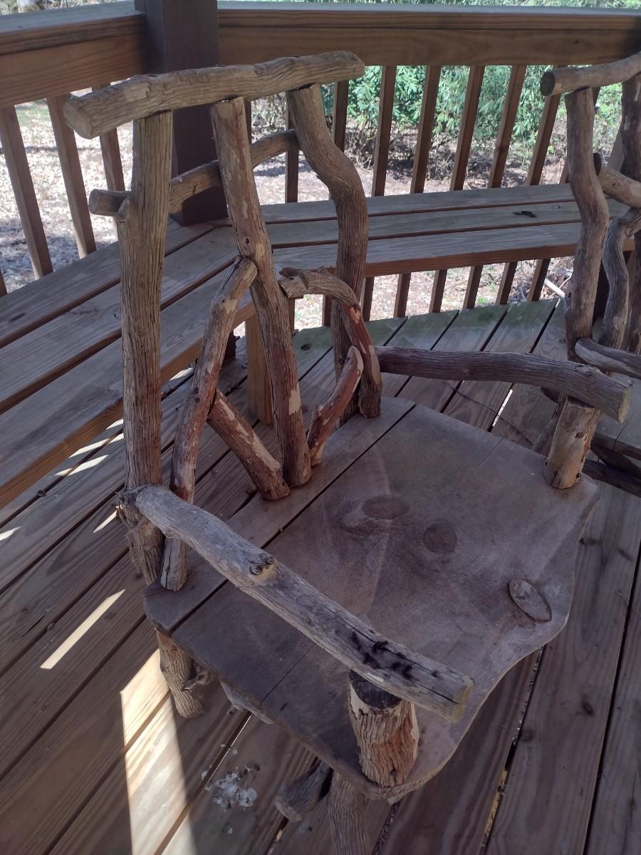 Twig and Log Cabin Outdoor Chair PLEASE NOTE:. Due to no internet connection or wireless service, all invoices must be prepaid via PayPal, Stripe, or Zelle prior to arrival at pick up. Exact change cash onsite is acceptable but absolutely no debit or credit cards at time of pick up.