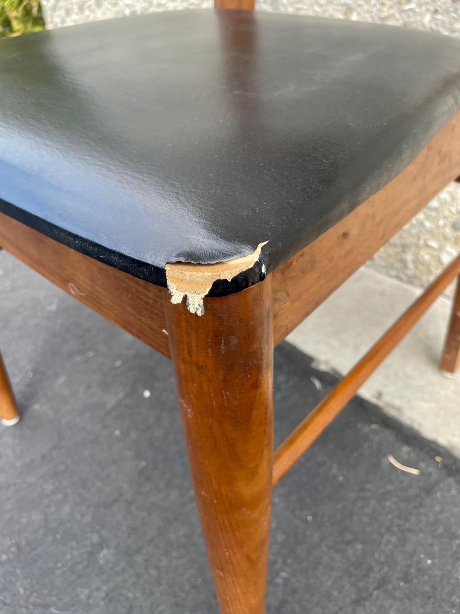 Vintage Wood & Leather Midcentury Dining Room Side Chair. In vintage condition. Light wear to the corner of seat and edge seat back.