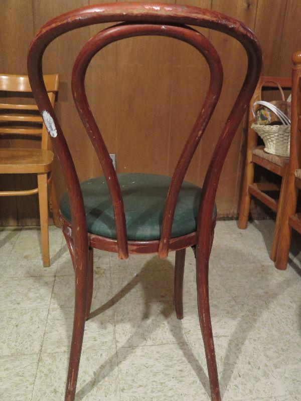 One ice cream parlor chair with padded seat. Please review all photos and read Terms and Conditions before placing a bid. Pick up is Wednesday, November 20 from 4-7pm and Saturday, November 23 from 9am-2pm in Mantua, New Jersey. All sales are final. All sales are as is, where is. Please bring all boxes, tools, and muscle needed to remove your items. Any photo props are not included. All measurements are approximate. Items come from dog-friendly home.
