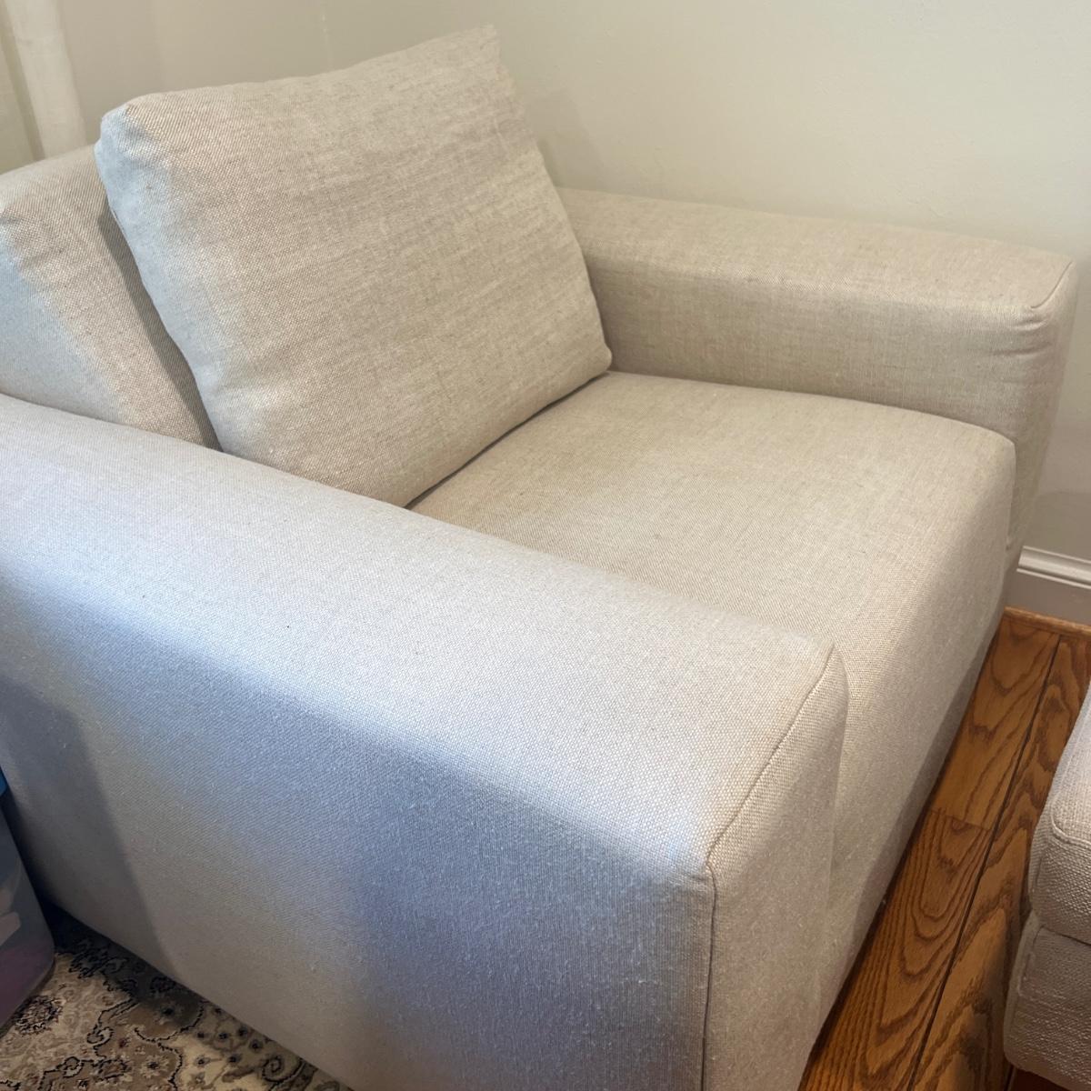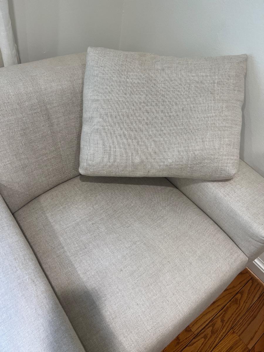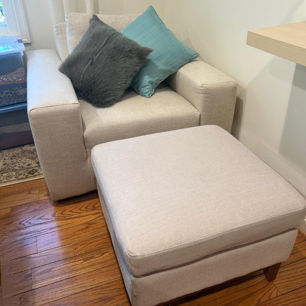 The ottoman has a slight stain as shown in last pic. Matching chair lot 5.
