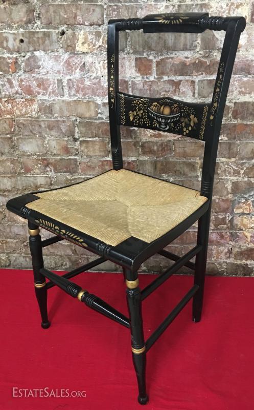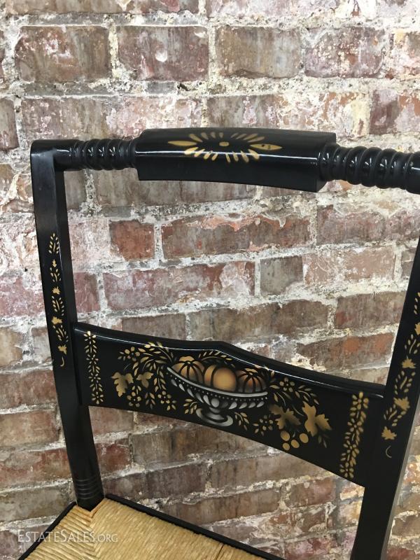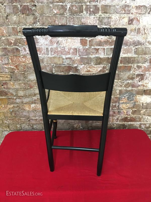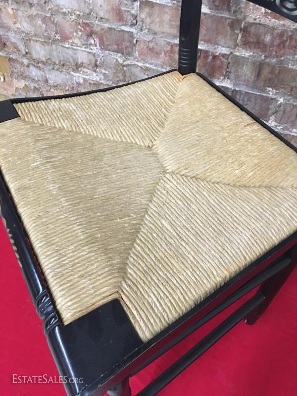 Chair Painted Black & Gold Rush Seat