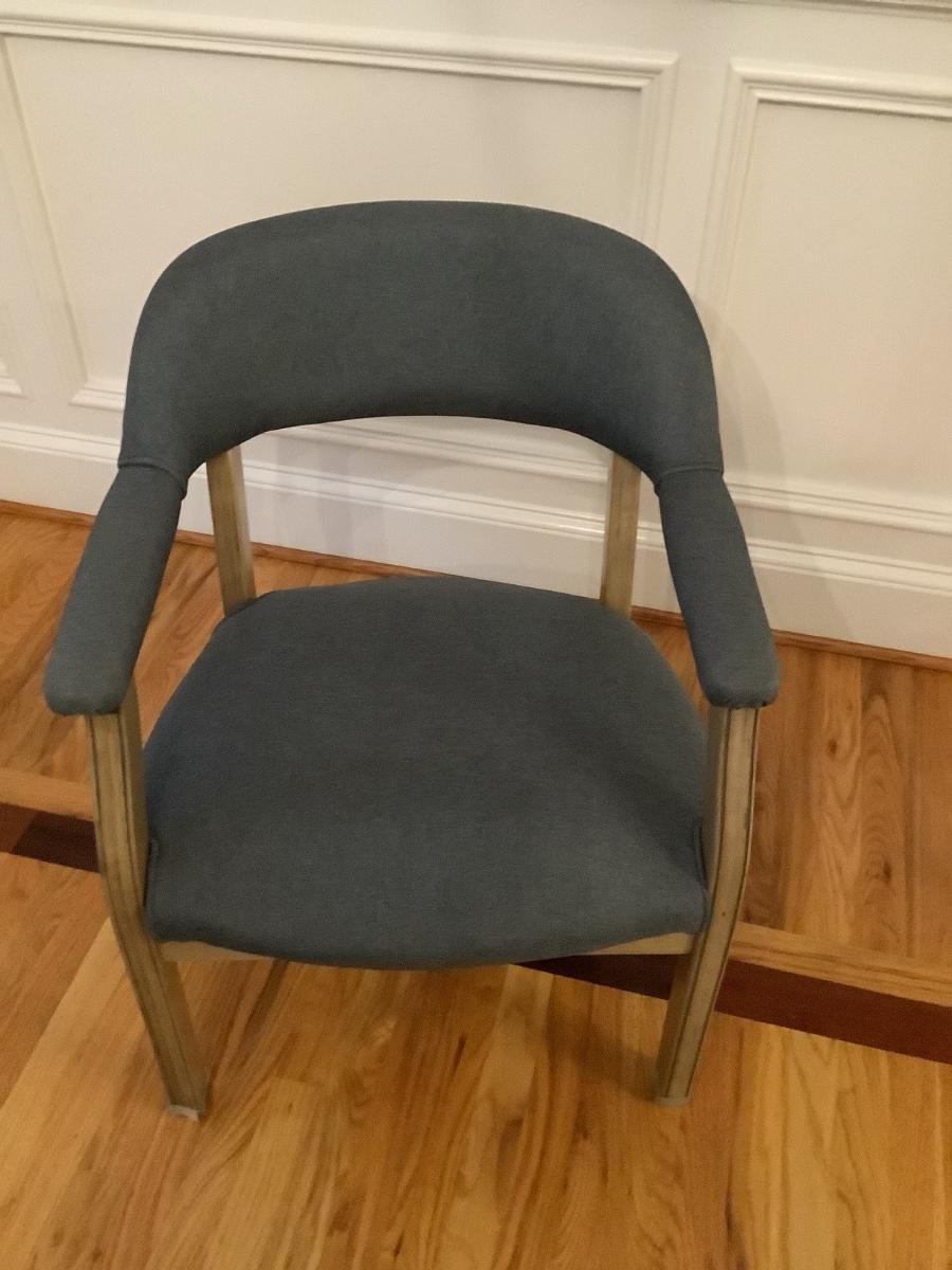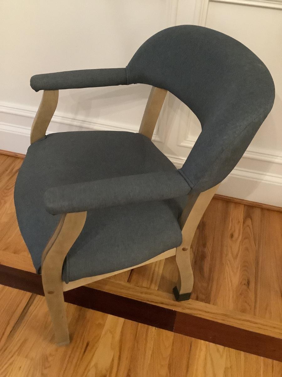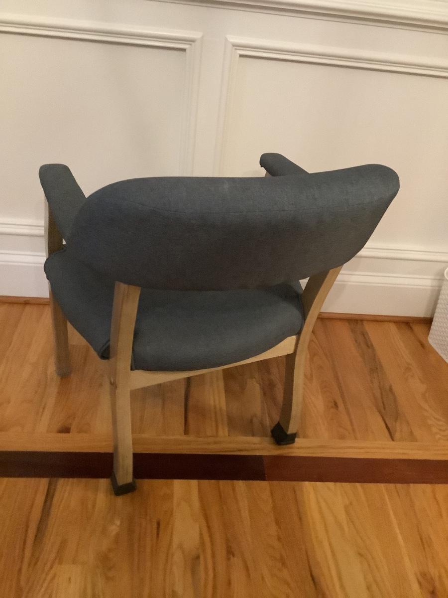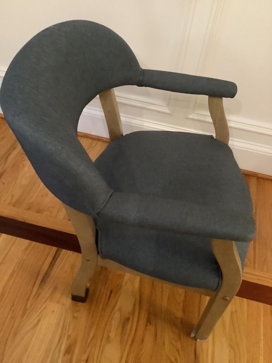 Chair with grey fabric in good condition 34"H 24"L 21"W