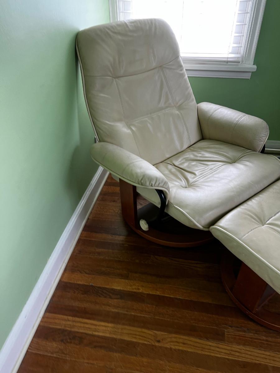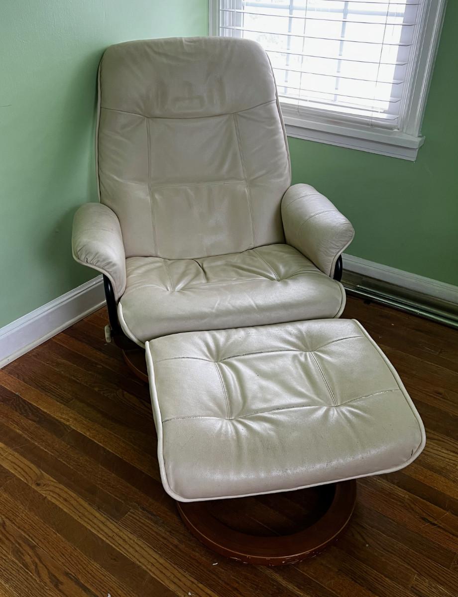 Chair Works Lounge Chair with ottoman WHITE Leather