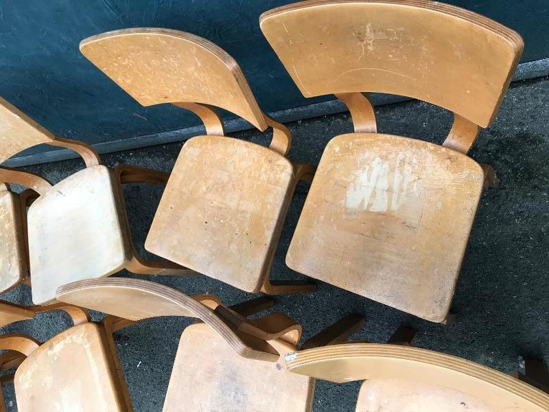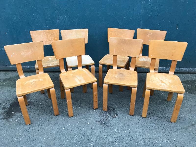 Set of 8, dimensions are 14”L x 16”W x 16.5”H seat, 30.75”H back