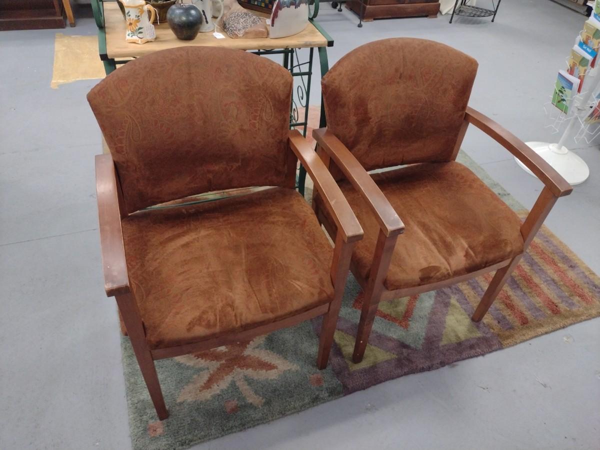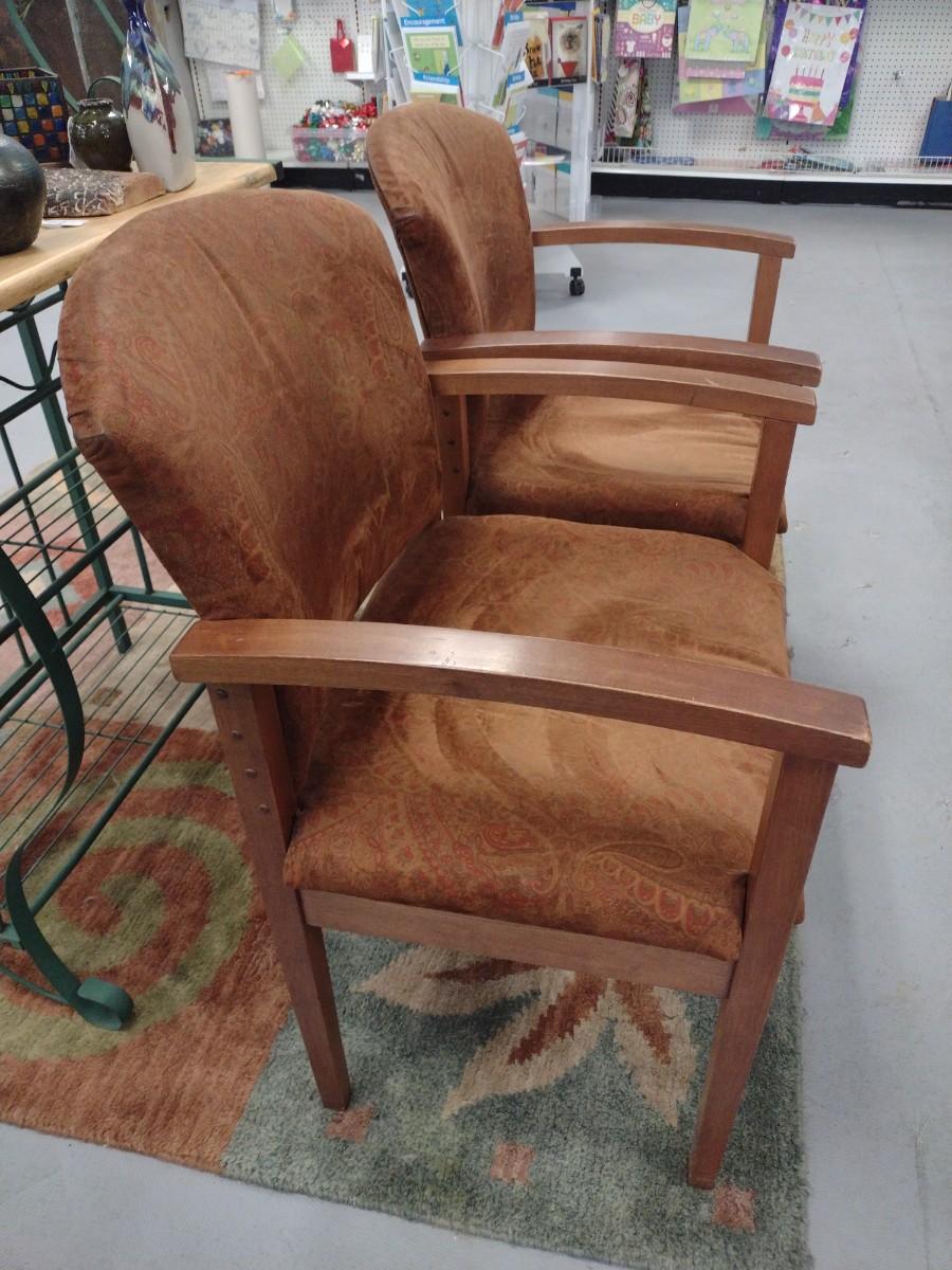 Pair of Wood Frame Upholstered Seat and Back Chairs may have wear and scratches to the finish