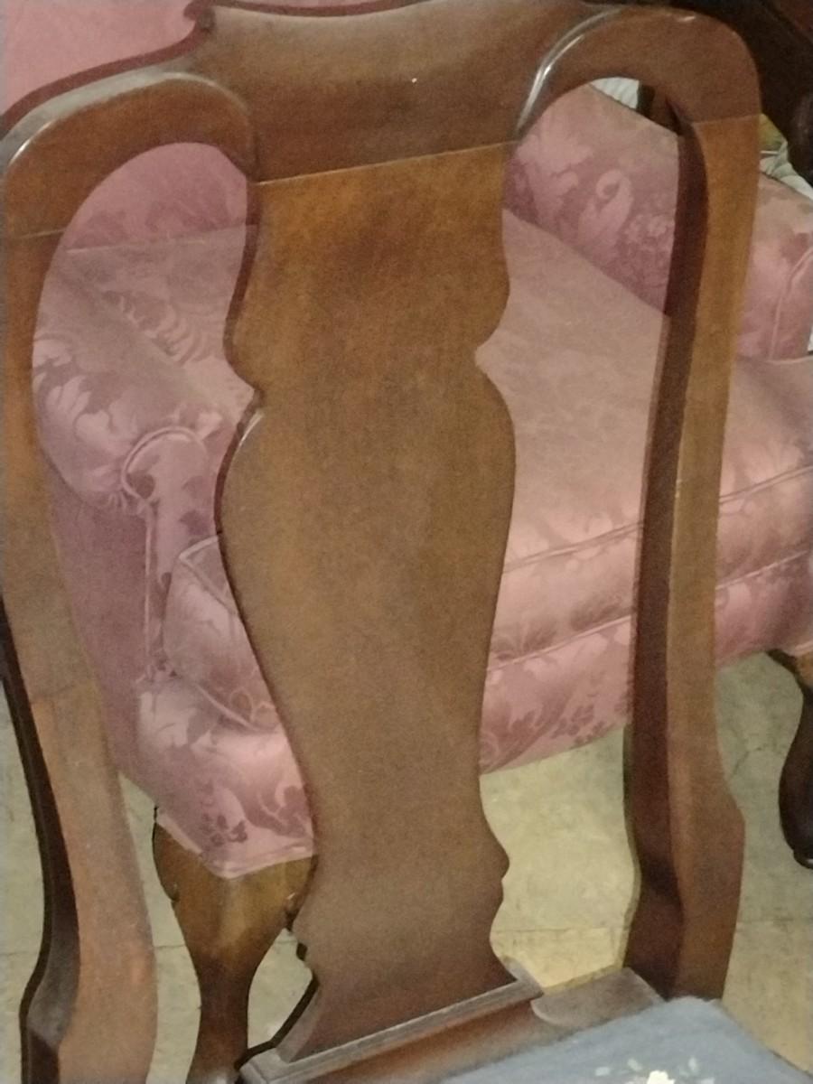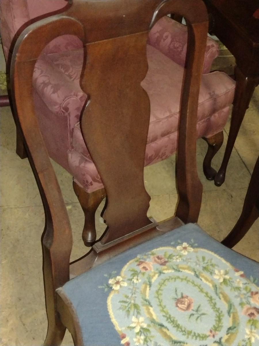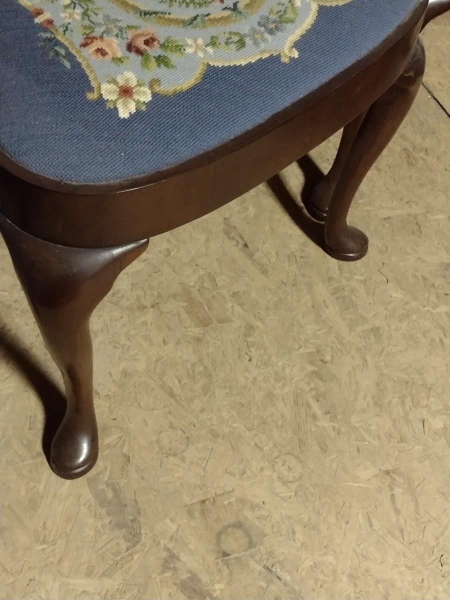 Pair of Urn Back Chairs with Embroidered Seats upstairs item. Please bring assistance to remove from the home.