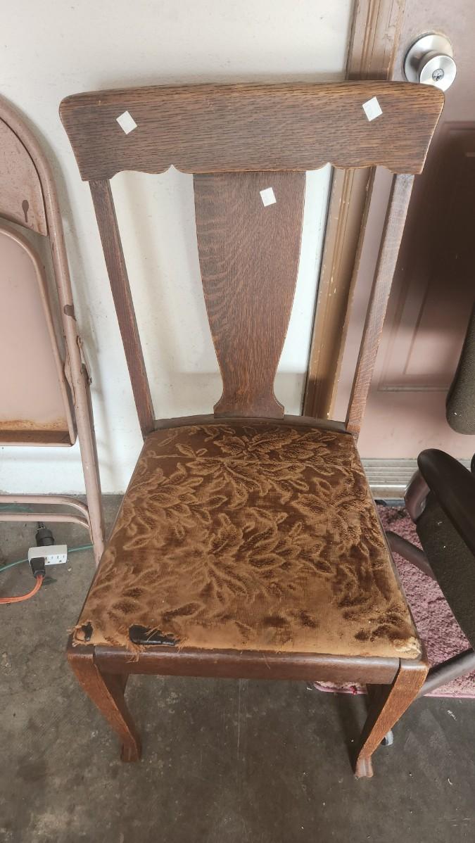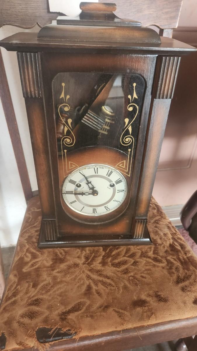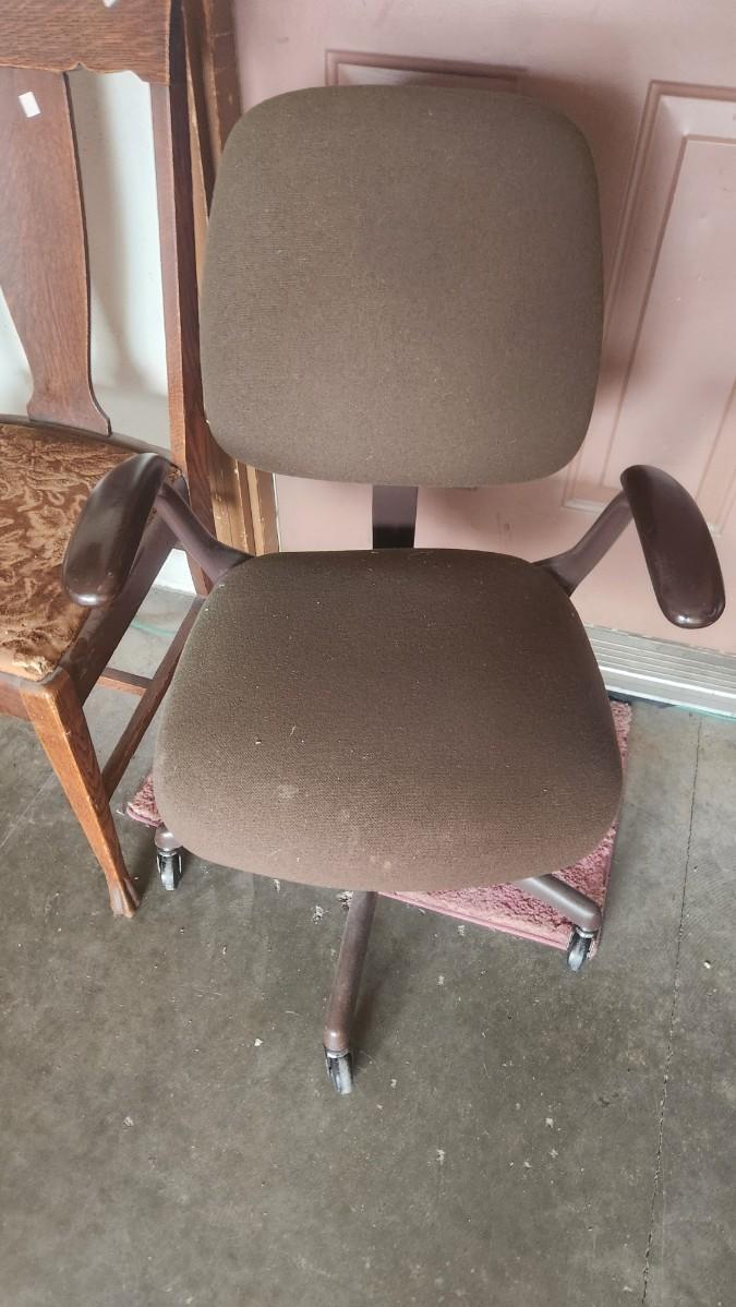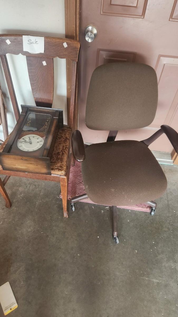 1 vintage chair, 1 office chair, and clock. Clock appears to be broken.