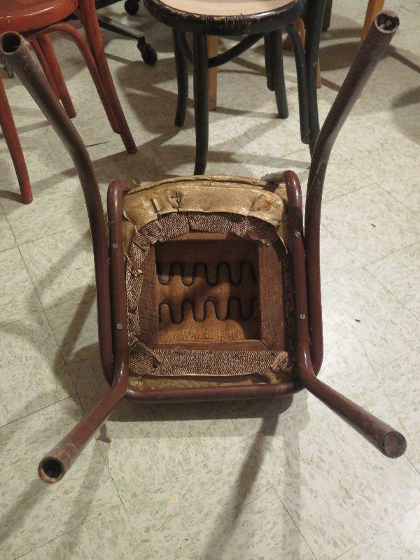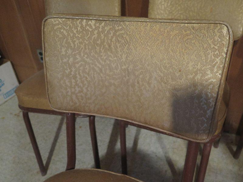 Metal chairs with padded seat and back. Just need a good cleaning. Located in basement. Please review all photos and read Terms and Conditions before placing a bid. Pick up is Wednesday, November 20 from 4-7pm and Saturday, November 23 from 9am-2pm in Mantua, New Jersey. All sales are final. All sales are as is, where is. Please bring all boxes, tools, and muscle needed to remove your items. Any photo props are not included. All measurements are approximate. Items come from dog-friendly home.