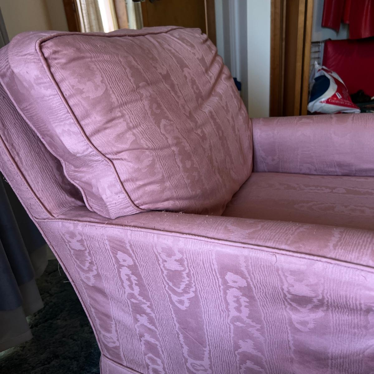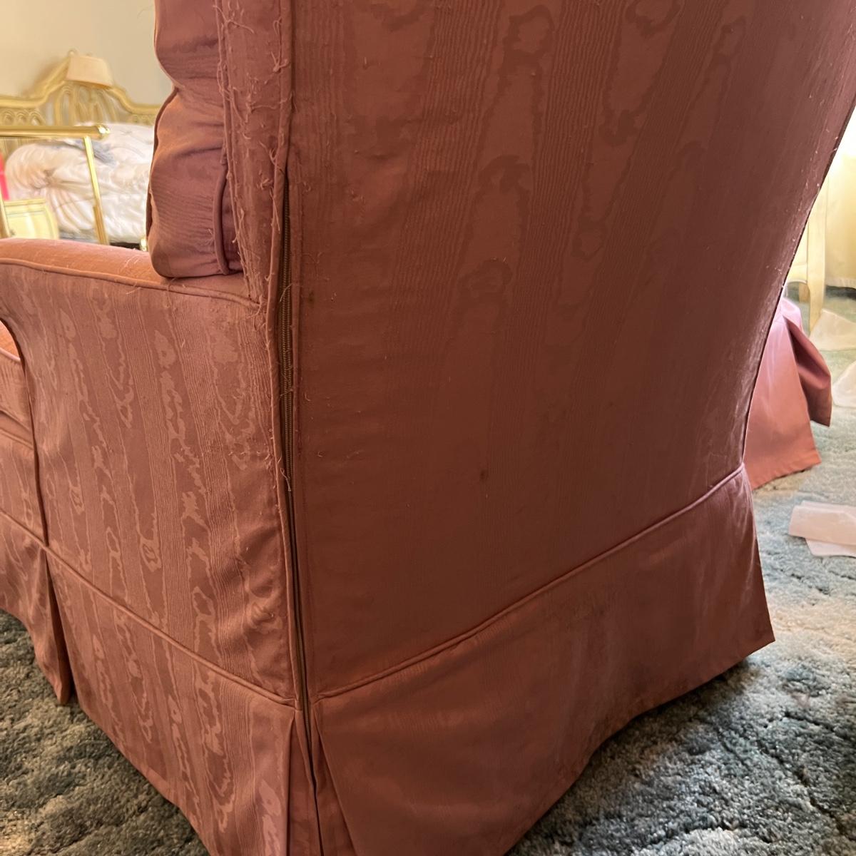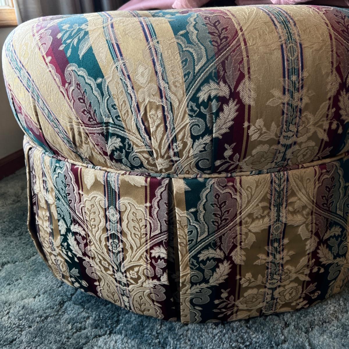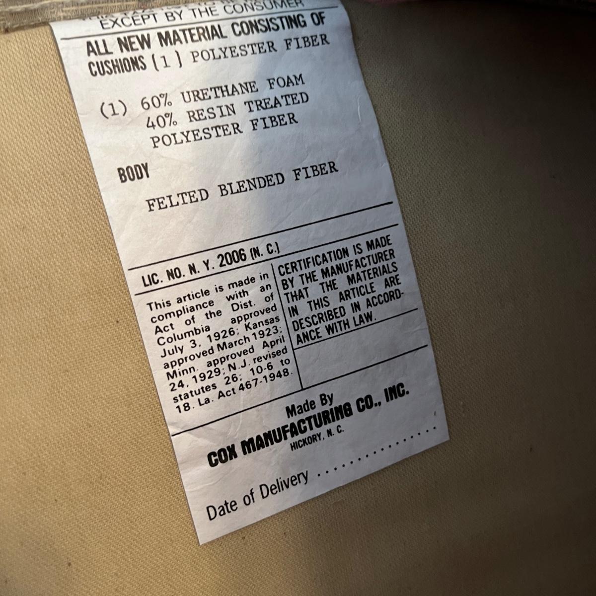 Both have covers. Pics show furniture without covers. Original ottoman fabric is in good shape. Cox Manufacturing Co. lounge original fabric shows wear. Width 25 1/2", Length 51", Height 31 1/4",